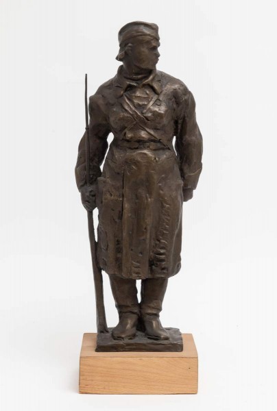 Главная Онлайн ресурсыКоллекцияСкульптура Девушка — боец МПВО Исаева В. В. 1898, Кронштадт – 1960, Ленинград Девушка — боец МПВО 1944 Бронза, гранит (основание). 42 x 19 x 12; основание: 5 x 15,5 x 14 СО-706 Пост. в 1962 в дар от Л. В. Исаевой, сестры скульптора Период Первая половина XX века КатегорияПортрет Ключевые слова Великая Отечественная война | Блокада Ленинграда 1941–1944 | советское искусство | женский портрет | воины, военные | военная одежда | головные уборы | война | оружие Участие в виртуальных выставках и 3D-турах Да будет мерой чести Ленинград!Помним! К 80-летию полного освобождения Ленинграда от фашистской блокады Поделиться «Виртуальный Русский музей» в социальных сетях: