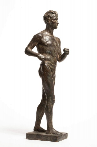 Курс на освоение классического наследия, который в 1930-е годы становится магистральным для всего советского искусства, особенно отчетливо проявился в скульптуре, где изображения античных атлетов воспринимаются как пластический идеал художественного воплощения образа современного спортсмена. Подтверждением этому служат работы, где в полной мере раскрыта совершенная красота обнаженного тела, передача которой являлась одной из важнейших задач для многих крупнейших скульпторов прошлых эпох: Физкультурница после плавания» Абрама Браиловского (СО-151), «Серафим Знаменский (Чемпион по бегу)» Сарры Лебедевой, «Борцы» (СО-121) и «Метание копья» (СО-2053) Матвея Манизера, «Бег» (СО-2069), «Пловчиха» (СО-2070) и «Дискобол» (СО-2067) Александра Самохвалова. Примечательно, что романтика спортивных достижений в это время обнаруживает себя не только в живописных и скульптурных произведениях, но и в декоративно-прикладном искусстве. В фарфоровых статуэтках, а также в вазах, чайниках, кружках, кубках и сливочниках с изображением физкультурников и участников спартакиад не только визуальный образ, но и сама пластическая специфика материала раскрывает новые, неожиданные, подчас забавные грани того массового явления, которым в это десятилетие становятся спорт и физическая культура. Анатолий Дмитренко, Руслан Бахтияров. «О, спорт — ты мир!» // Спорт. СПб, 2009. С. 15-16.