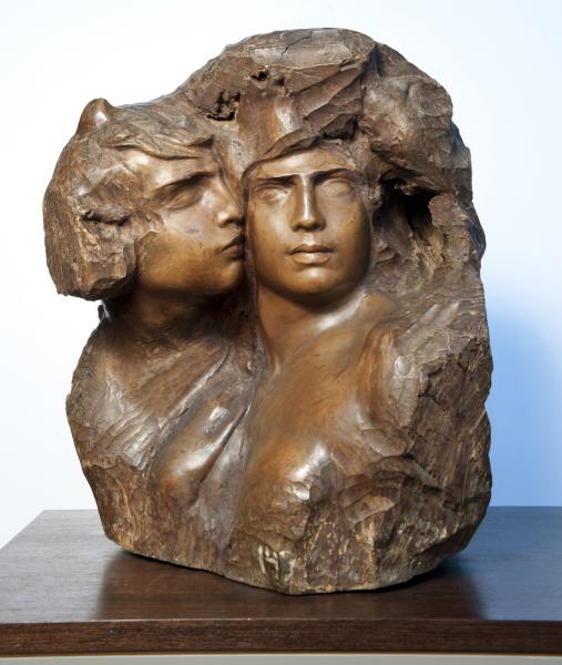 The work "Whisper" shows that the sculptor definitely understood the prospects that opened with the work with wood and the possibilities of compositional diversity based on the use of its natural structure. Erzia's love for smooth surfaces and combination of processed and untouched parts of this material when creating romanticized images also begins to appear in it.