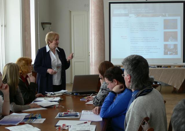 - Работа на региональных страницах Портала «Русский музей: виртуальный филиал». Для участников семинара было организовано групповое методическое занятие, посвященное самостоятельной работе сотрудников виртуальных филиалов на портале проекта, и проведены индивидуальные консультации с сотрудниками Отдела информационно-образовательных межмузейных проектов Русского музея по вопросам заполнения разделов виртуальных филиалов на Портале проекта.