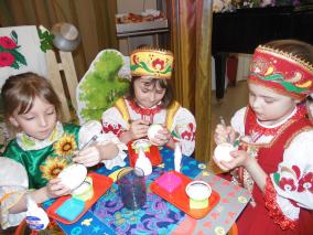 Специально разработанные музыкально-дидактические игры позволили познакомить детей с русскими традициями и фольклором – народными песнями, плясками, играми, росписью и украшением пасхальных яиц.