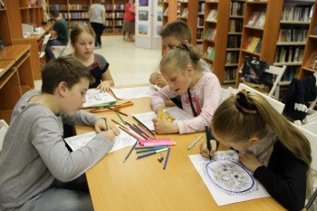 Весь месяц в зале детского абонемента была развернута книжно-иллюстративная выставка "Город мастеров", посвященная русскому народному искусству. На выставке также были представлены глиняная игрушка, кружева, хохлома, гжель.