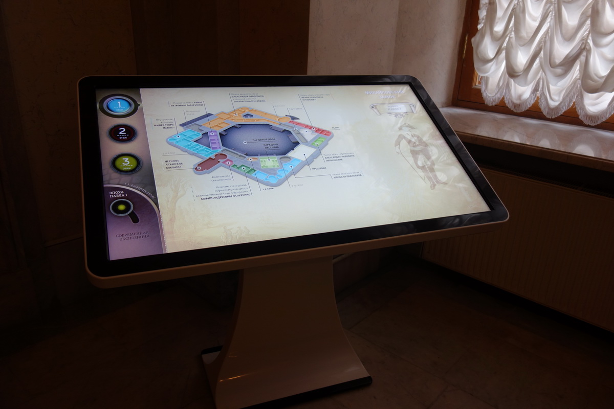 Навигационная система размещена на сенсорном интерактивном столе, что позволяет посетителю легко взаимодействовать с контентом приложения ‑ познакомиться с замком эпохи Павла I (расположением помещений, его обитателями) и с современной экспозицией. Программа дает возможность быстро и в наглядной форме получить интересующую информацию, сориентироваться в пространстве, продумав собственный маршрут передвижения по музейным залам.