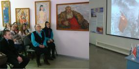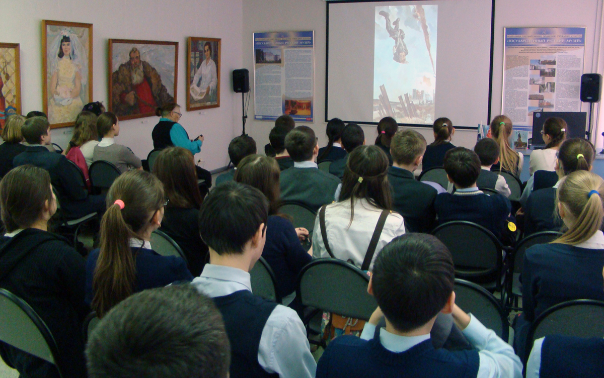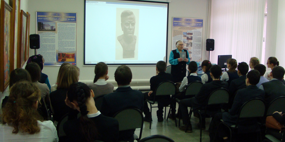 В ходе беседы были использованы материалы Виртуального филиала Государственного Русского музея. Школьники увидели своих сверстников, победителей конкурса мультимедийных ресурсов, посвященных теме Великой Отечественной войны в искусстве. В этот визуальный ряд включены монументальные произведения, отражающие битву на Курской дуге, в которой Алексей Маресьев принимал участие после обучения в Ибресинской летной школе, а также бюст Алексея Петровича Маресьева работы О.К. Комова, мастера выразительных скульптурных портретов.