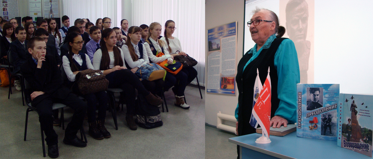 В 2016 году исполняется 75 лет с начала Великой Отечественной войны. Один из прославленных героев войны — Алексей Петрович Маресьев, летчик-истребитель, в результате тяжелого ранения потерявший обе ноги и сумевший вернутся в боевой строй. Его подвиг вдохновил писателя Б.Полевого на создание «Повести о настоящем человеке», которая стала известна всему миру. О судьбе легендарного летчика и его связи с чувашским краем рассказала учащимся 7-х классов МБОУ «СОШ № 18» гость КВЦ «Радуга» Нарспи Корниловна Васильева.