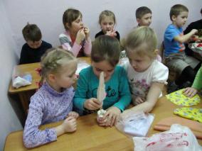 На выездном мероприятии "Старинная игрушка - русская забава" дети познакомились с историей игрушки. Ребята узнали, как отличать дымковскую игрушку от филимоновской, собирали матрёшек. Кроме того, ребята узнали историю традиционной тряпичной куклы. Поиграли в игру "Отгадай, что за кукла?", на примере кукол, сделанных народным мастером И.В. Агаевой. Для детей был проведён мастер-класс по изготовлению тряпичной куклы "Колокольчик". Они сами смогли сделать яркие и красочные "Колокольчики".