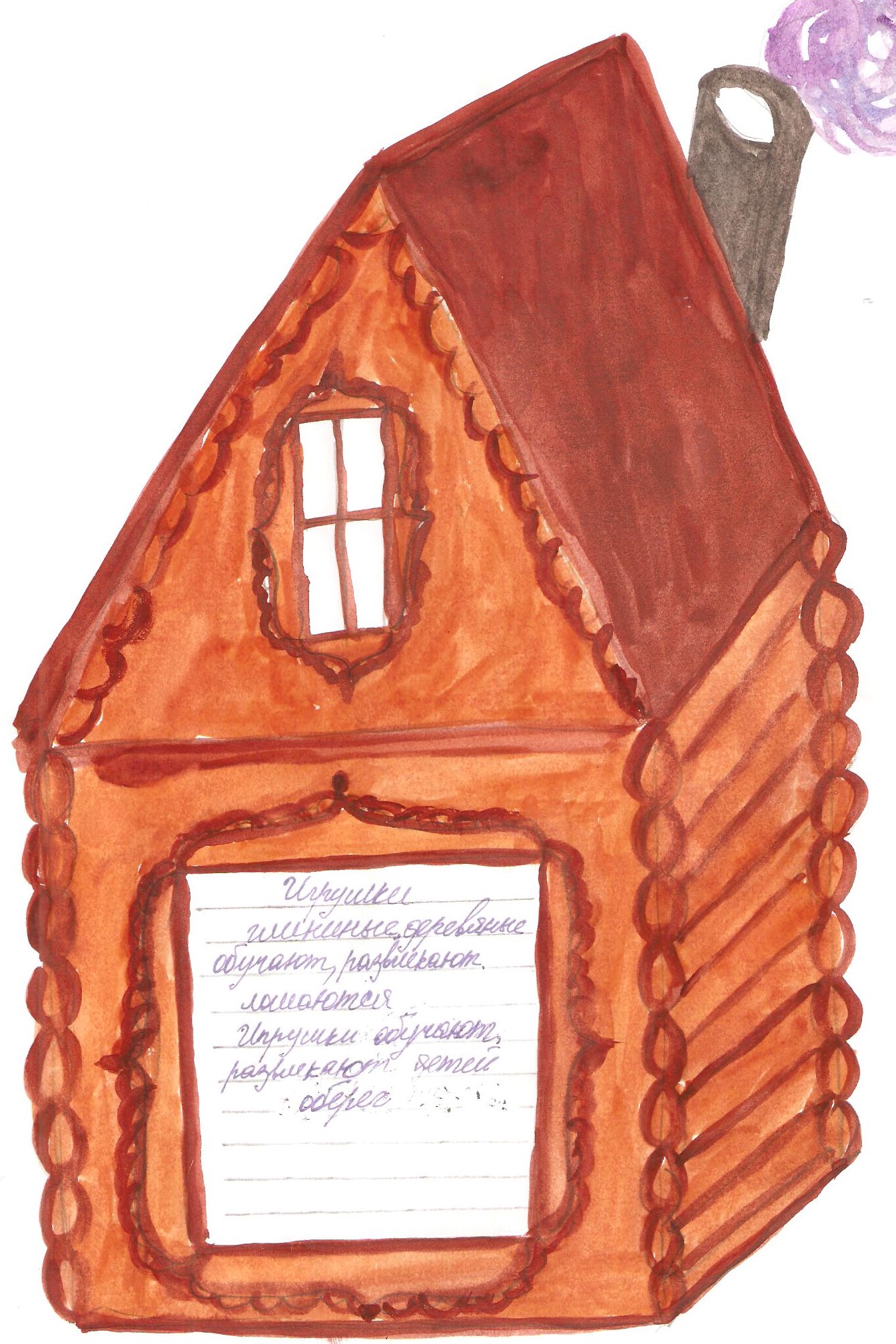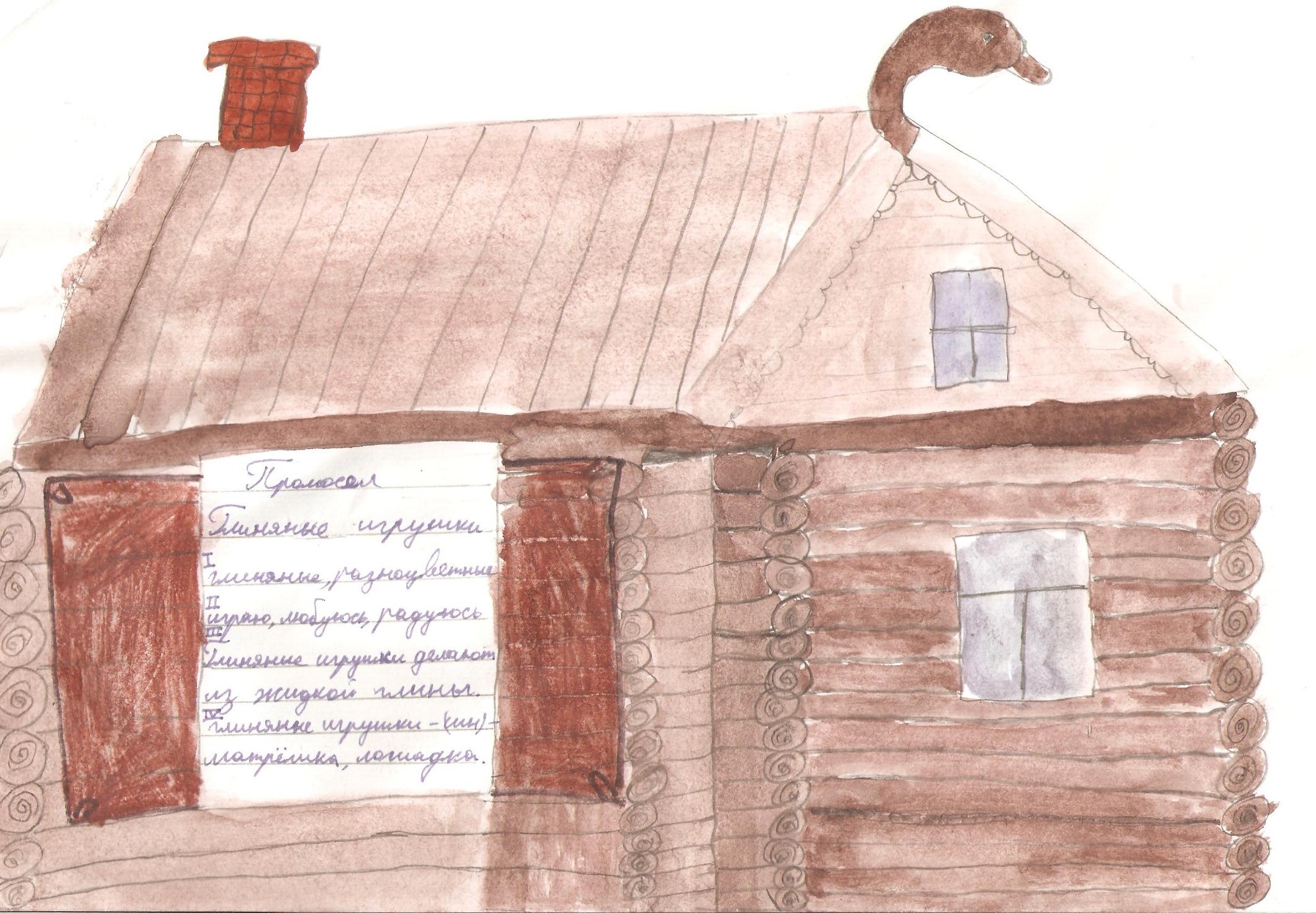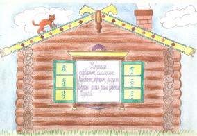 Всё это нашло отражение в итоговом занятии во время выполнения творческой работы. В своих рисунках ребята изобразили русскую избу с её элементами и бытовыми традициями. А в синквейне они отметили важность и любознательность этих занятий. Беседы во время экскурсии обогатила кругозор учащихся, их словарный запас.