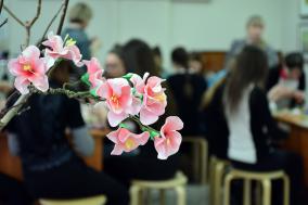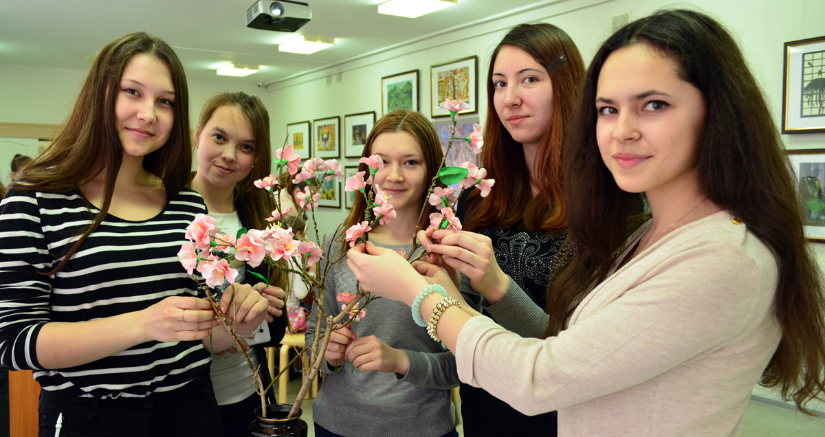 В период открытия выставки острова Японии покрыты легкими нежными облаками лепестков сакуры, и все жители отмечают праздник ханами — цветения сакуры. В день открытия коллективный творческий порыв сподвиг всех гостей - от школьников до их преподавателей — на создание великолепных цветущих бутонов сакуры под руководством учителя ИЗО и технологии КС(К)ОУ «Чебоксарская специальная (коррекционная) общеобразовательная школа №3» Людмилы Алимасовой. Этот символ Страны восходящего солнца гармонично дополнил выставку в «Радуге».