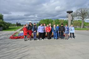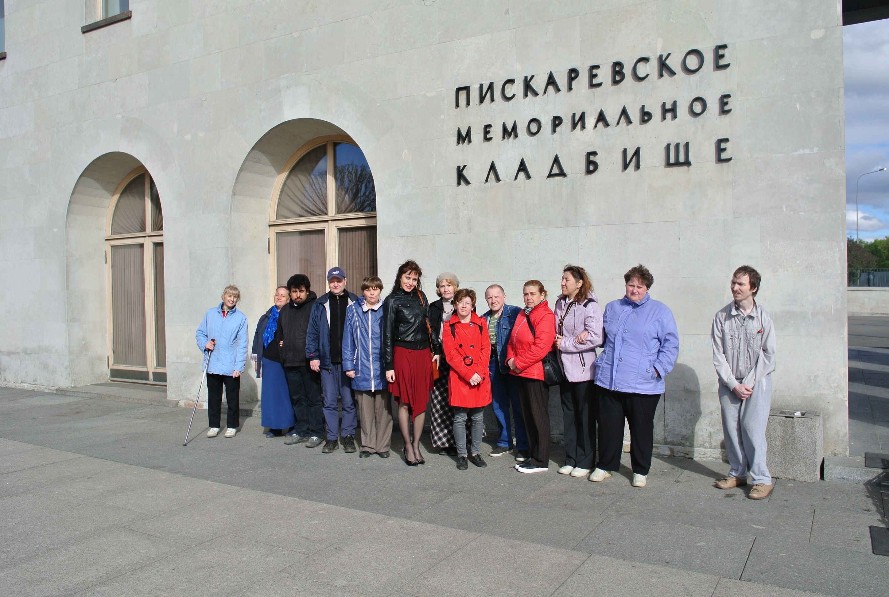 Встреча продолжилась на Пискаревском мемориальном кладбище, куда слушатели отправились на автобусе уже не на виртуальную, а на реальную экскурсию. Ее провела ведущая мероприятия Оксана Эдуардовна Панова. Она рассказала об истории создания Пискаревского мемориала, об особенностях его архитектурной композиции и , конечно же, о подвиге лежащих здесь сотен тысяч ленинградцев.