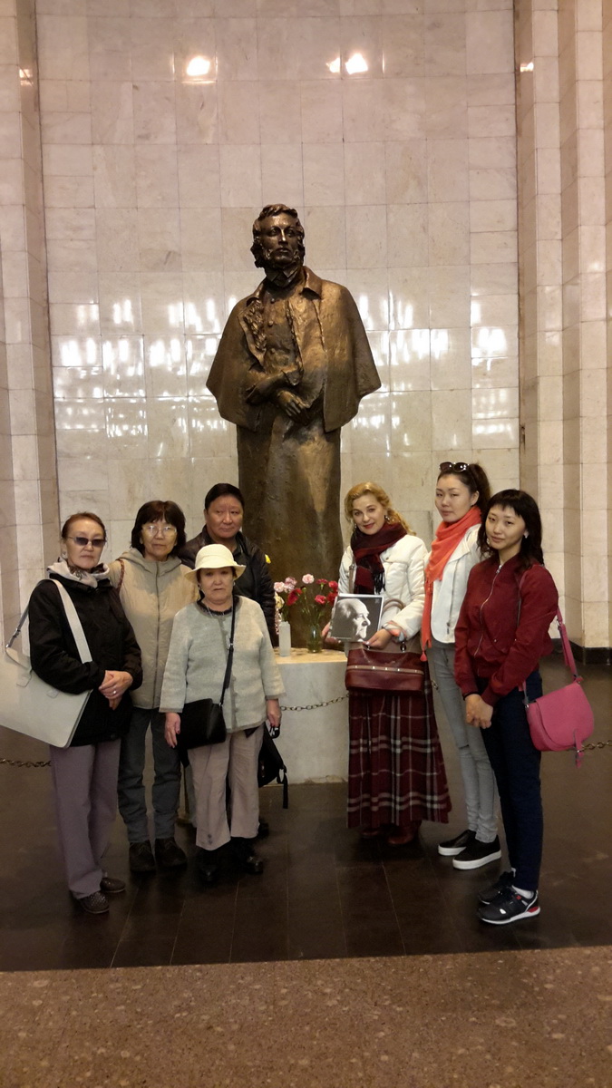 Знакомство с гостями произошло в вестибюле станции метро «Чёрная речка», где были возложены цветы к подножию памятника А.С.Пушкина. Гости узнали об авторе памятника, почётном гражданине Санкт-Петербург, ветеране Великой Отечественной войны, скульпторе Михаиле Константиновиче Аникушине.