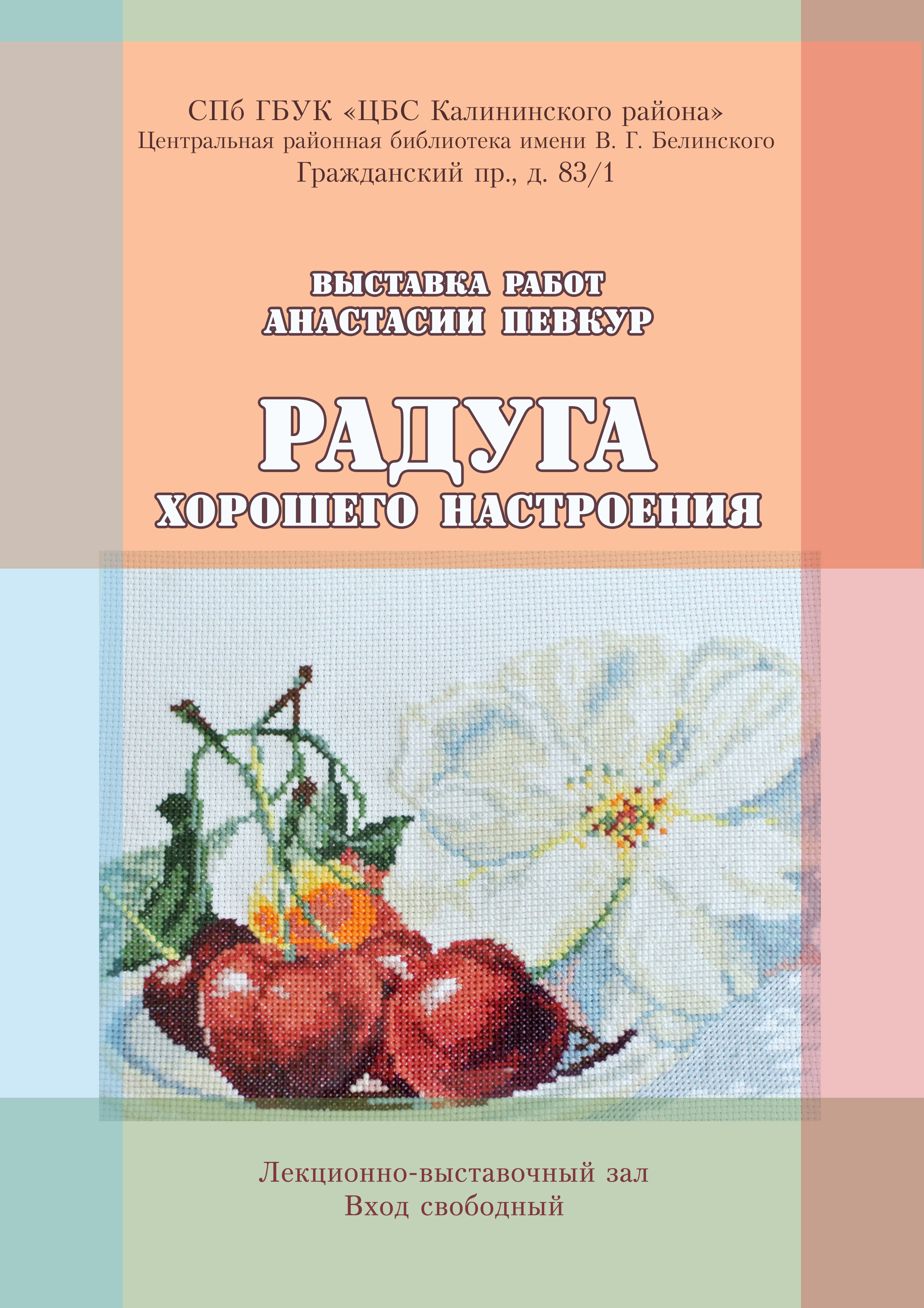 С 1 по 31 августа в лекционно-выставочном зале Центральной районной библиотеки имени В.Г. Белинского проходит выставка творческих работ Анастасии Певкур «Радуга хорошего настроения». Вниманию читателей и гостей библиотеки представлены картины, вышитые крестиком. С одной стороны, многие рукодельницы сегодня увлекаются этим видом творчества, и кажется, что ничего особенного в цветных крестиках нет.