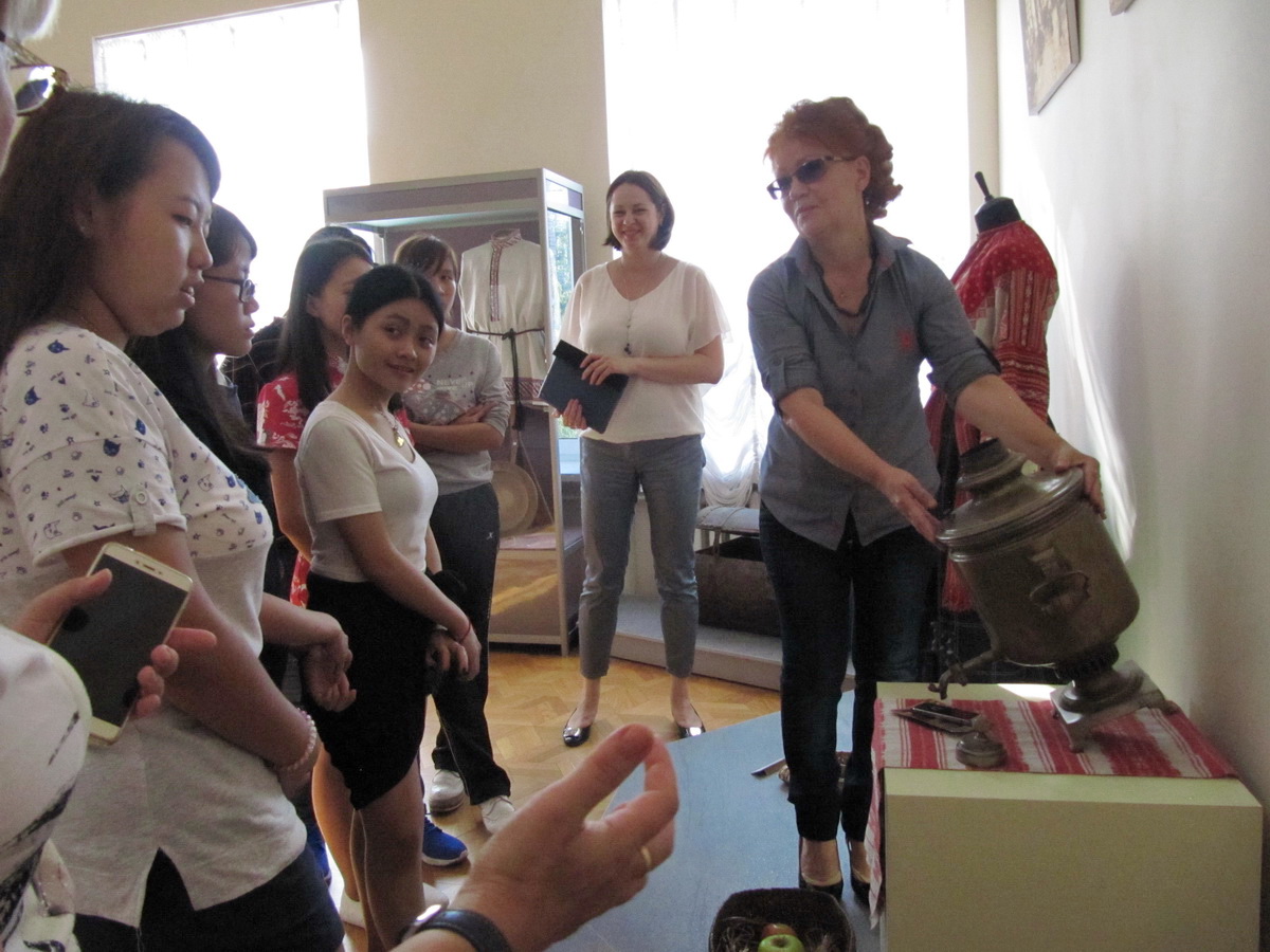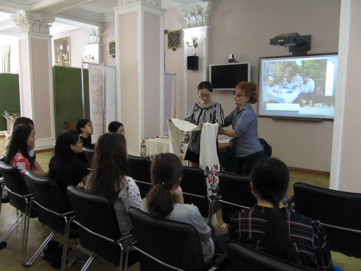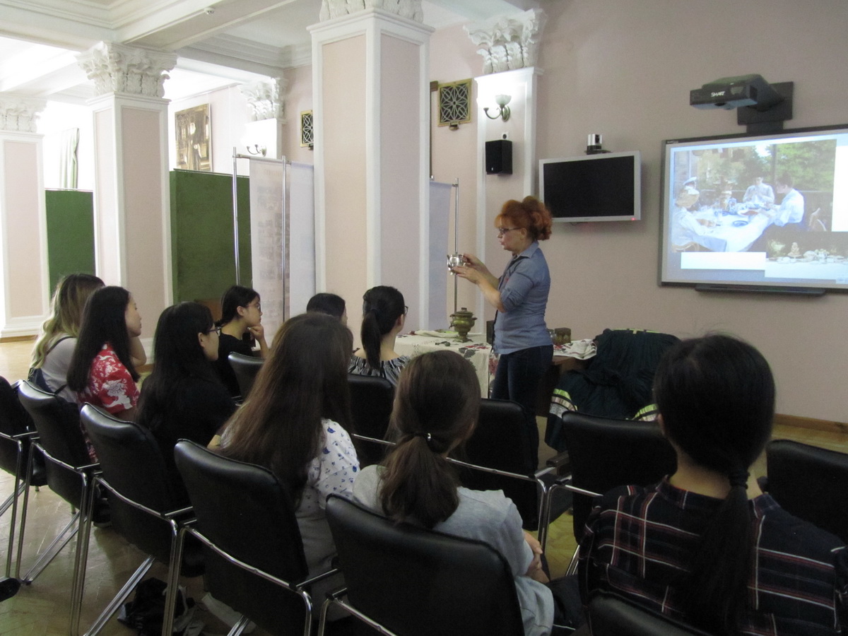 23 августа 2016 года старшим научным сотрудником Информационно-образовательного центра «Русский музей: виртуальный филиал» Дудышевой Татьяной Анатольевной проведено мероприятие для студентов ТГУ им. Г.Р.Державина «Традиции русского чаепития». Беседуя со студентами из Китая, сотрудник познакомил их с чайными традициями России, значимости и важности сохранения этих традиций в культуре. В процессе беседы студенты смогли поучаствовать в конкурсе «Способы заваривания чая», попытались отгадать загадки. На занятии ребята смогли познакомиться с культурой чаепития в дворянской, купеческой и крестьянской среде Тамбовской губернии, узнали, как открывались чайные в Тамбове и кто из благотворителей жаловал свои средства на эти заведения.