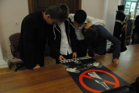 Для учащихся был организован интерактив, целью которого было "озвучить" плакаты: найти издательство, год издания и объяснить, какой призыв символизирует тот или иной плакат.