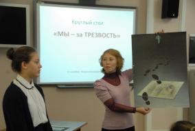 В рамках круглого стола с учащимися 7-9 классов школ № 4 и № 5 города Тамбова была проведена беседа с Ворониной Е.Л. – специалистом-экспертом отдела организации взаимодействия с органами государственной власти и межведомственного взаимодействия в сфере профилактики управления по контролю за оборотом наркотиков в УМВД России по Тамбовской области. В беседе с учащимися Православной гимназии им. Св. Питирима № 7 обсудили самые простые истины и поговорили о значении иконы-защитницы «Неупиваемая чаша».