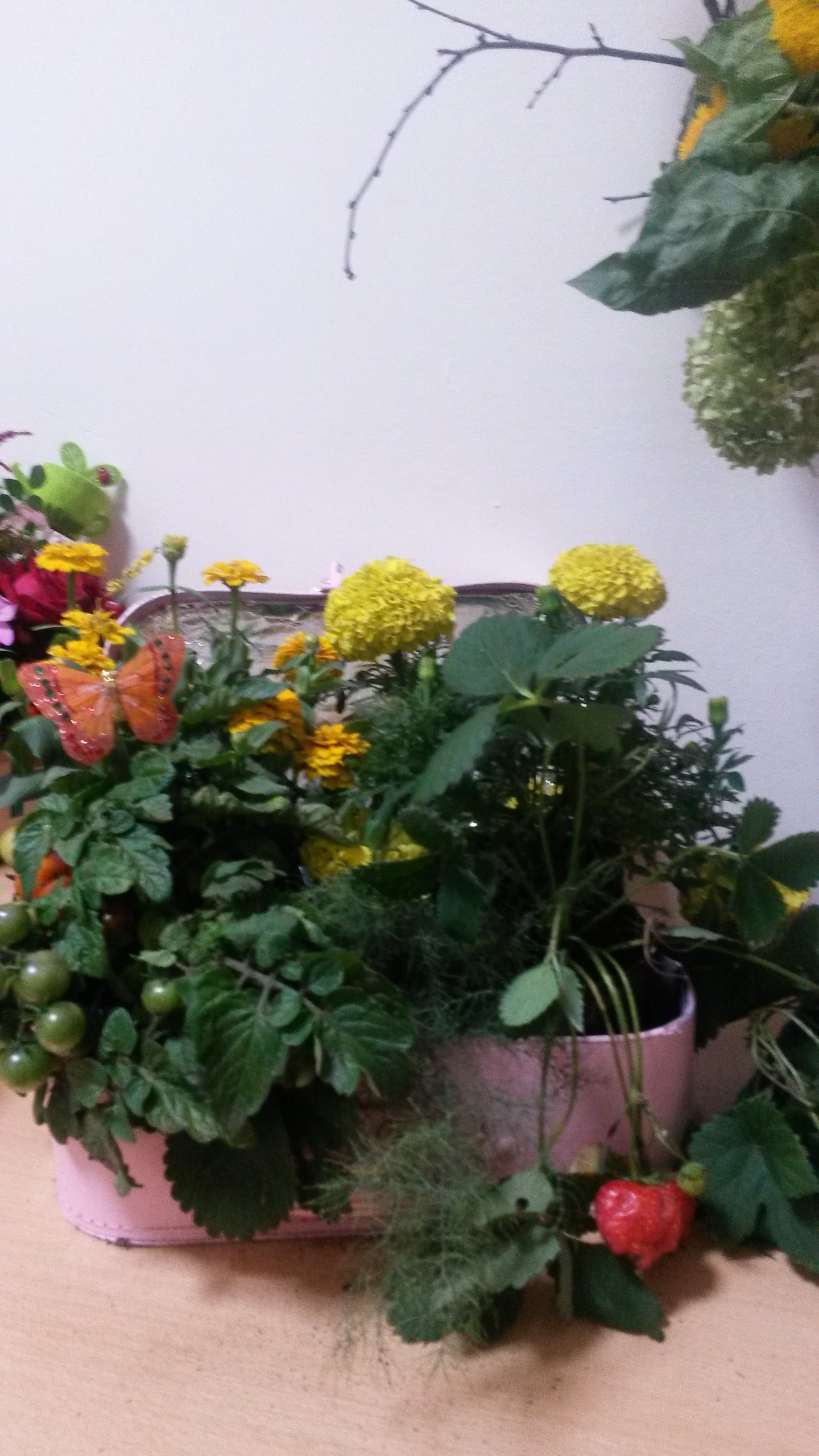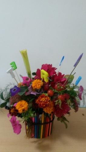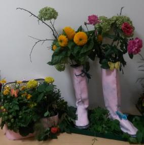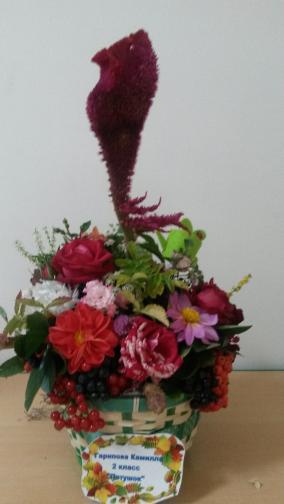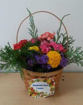 Ребята из разных классов  и дошкольных групп представили на выставку композиции из живых цветов  со своей клумбы.