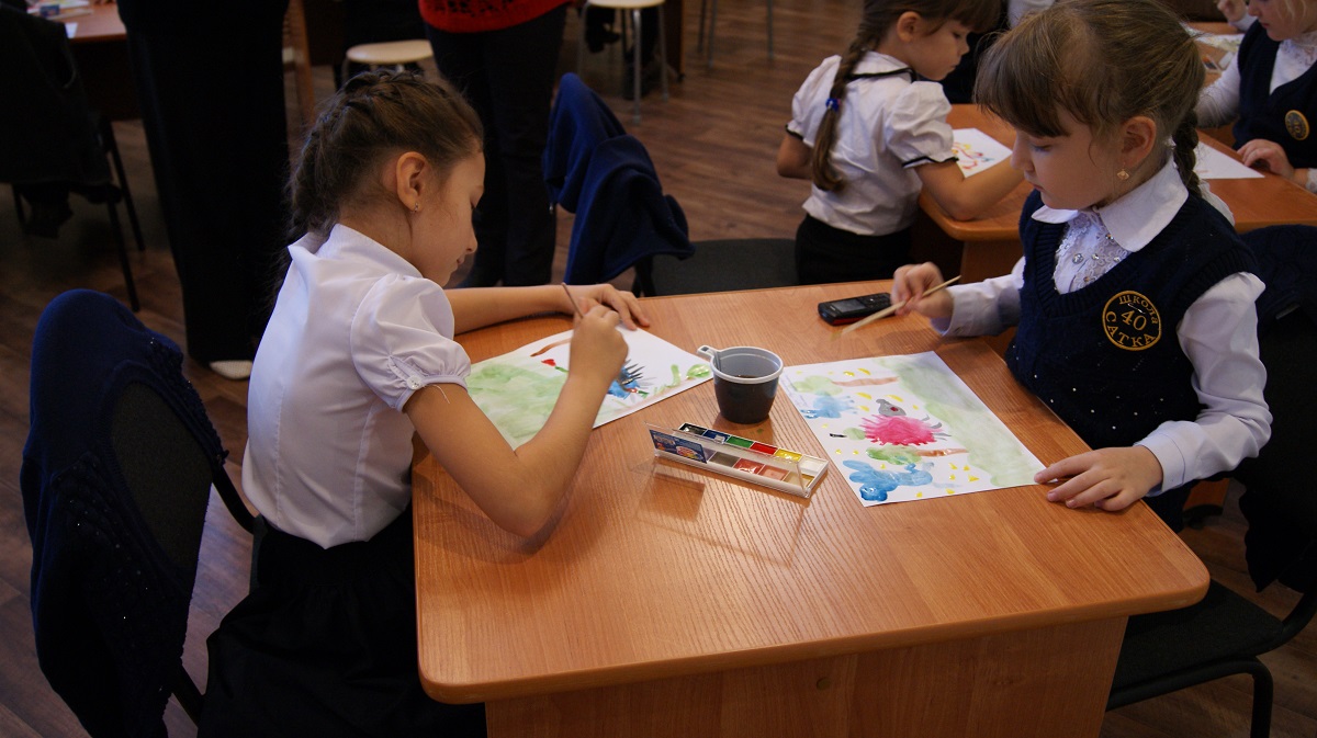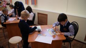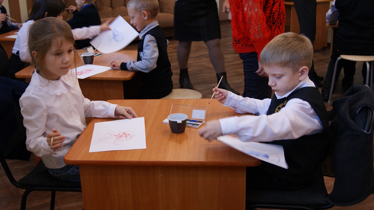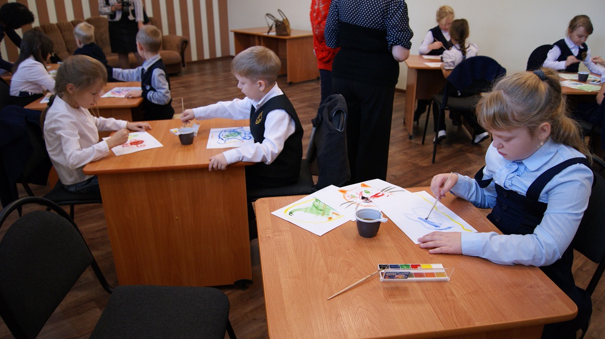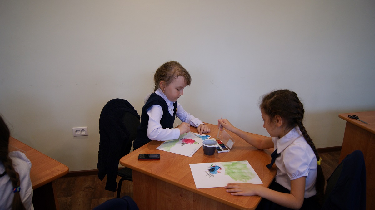 После просмотра умного фильма, ребята сами попробовали из кляксы создать рисунок. Сделав кляксу краской любимого цвета, каждый ученик поменялся листком со свои соседом по столу. Творческое воображение у детей включилось сразу! Зелёный слон, синий скромный ёжик, ощетинившаяся красная кошка со скрученным в колечко хвостом, – все эти создания уживаются на одном бумажном листе. А ещё – фантастическая машина с пропеллером, добрый динозавр. Чего только нет на рисунках! Среди творений есть и привычный нашему глазу осенний пейзаж, и «африканский», с горячим желтым песком и крокодилом под пальмами. Некоторые дети не стремились достичь конкретики в образе, а занимались колористическими поисками и получили пёстрые переливы цветов, похожие на радугу или на рябь на воде. Занятие по отыскиванию знакомых силуэтов и очертаний среди маленьких и больших клякс так увлекла юных художников, что с трудом удалось уговорить их заканчивать работу над своими произведениями. Дети и их руководители решили не останавливаться на достигнутом. В планах у них ещё не один раз посетить виртуальный филиал.