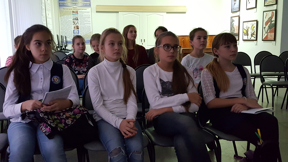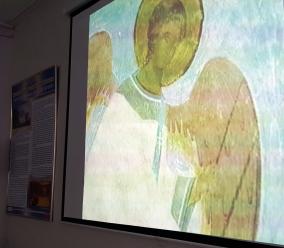 Ребятам демонстрировался фильм «Дионисий. «Богоматерь Одигитрия» – видеоновеллу из серии «История одного шедевра», цикла программ о скульпторах и художниках, чьи произведения хранятся в Русском музее. Юные художники узнали о жизненном и творческом пути иконописца, об эпохе, в которой жил автор шедевра, познакомились с последней работой мастера – иконой «Богоматерь Одигитрия» – его духовным завещанием.