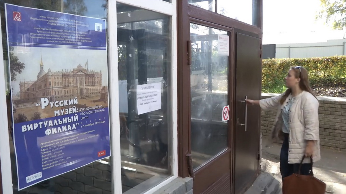 5 октября 2016 года в 12.00 в Арзамасском филиале Нижегородского государственного университета имени Н.И.Лобачевского состоялось открытие информационно-образовательного центра «Русский музей: виртуальный филиал». Это третий виртуальный филиал в Нижегородской области и 190-й виртуальный филиал Русского музея, открытый в рамках проекта «Русский музей: виртуальный филиал».