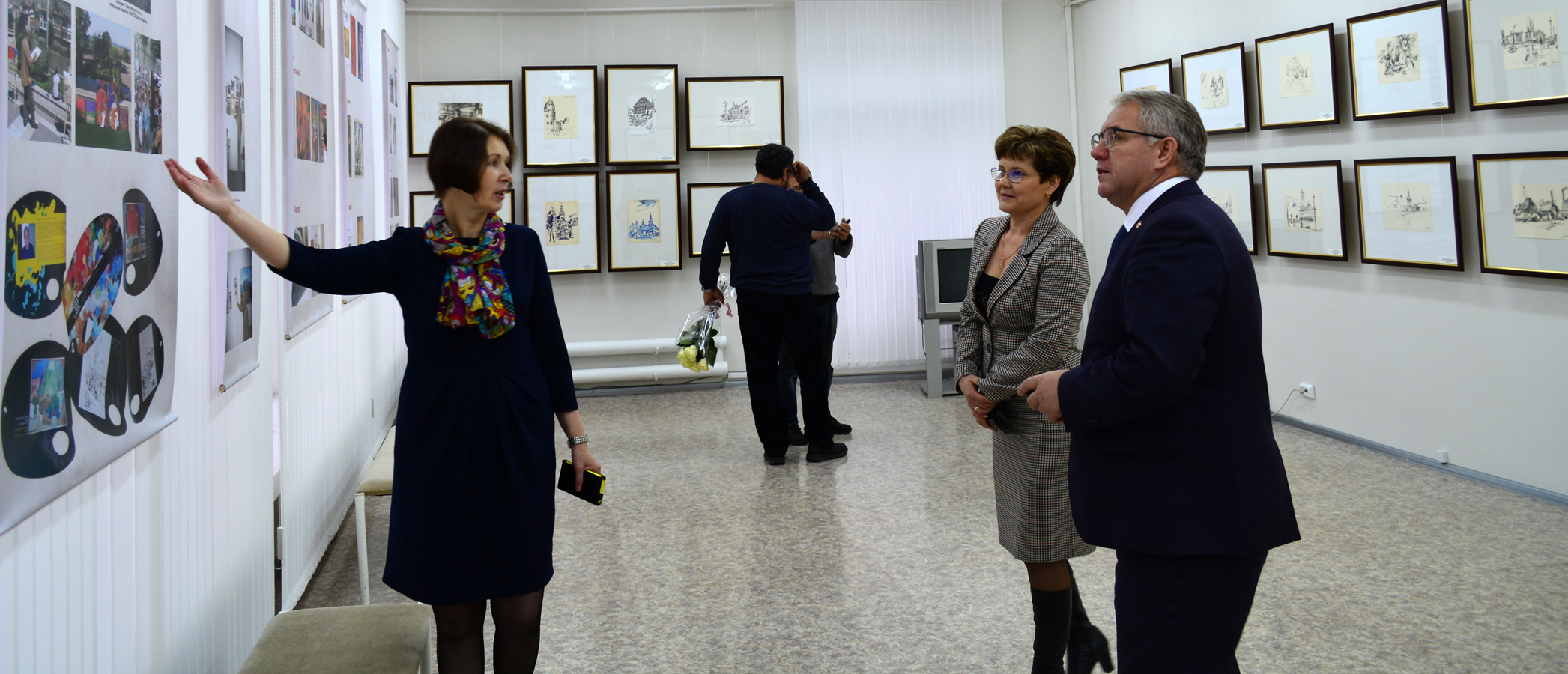 Лариса Юрьевна поздравила Виталия Петровича с юбилеем и открытием новой выставки, подчеркнув ее значимость в жизни Чувашской Республики.