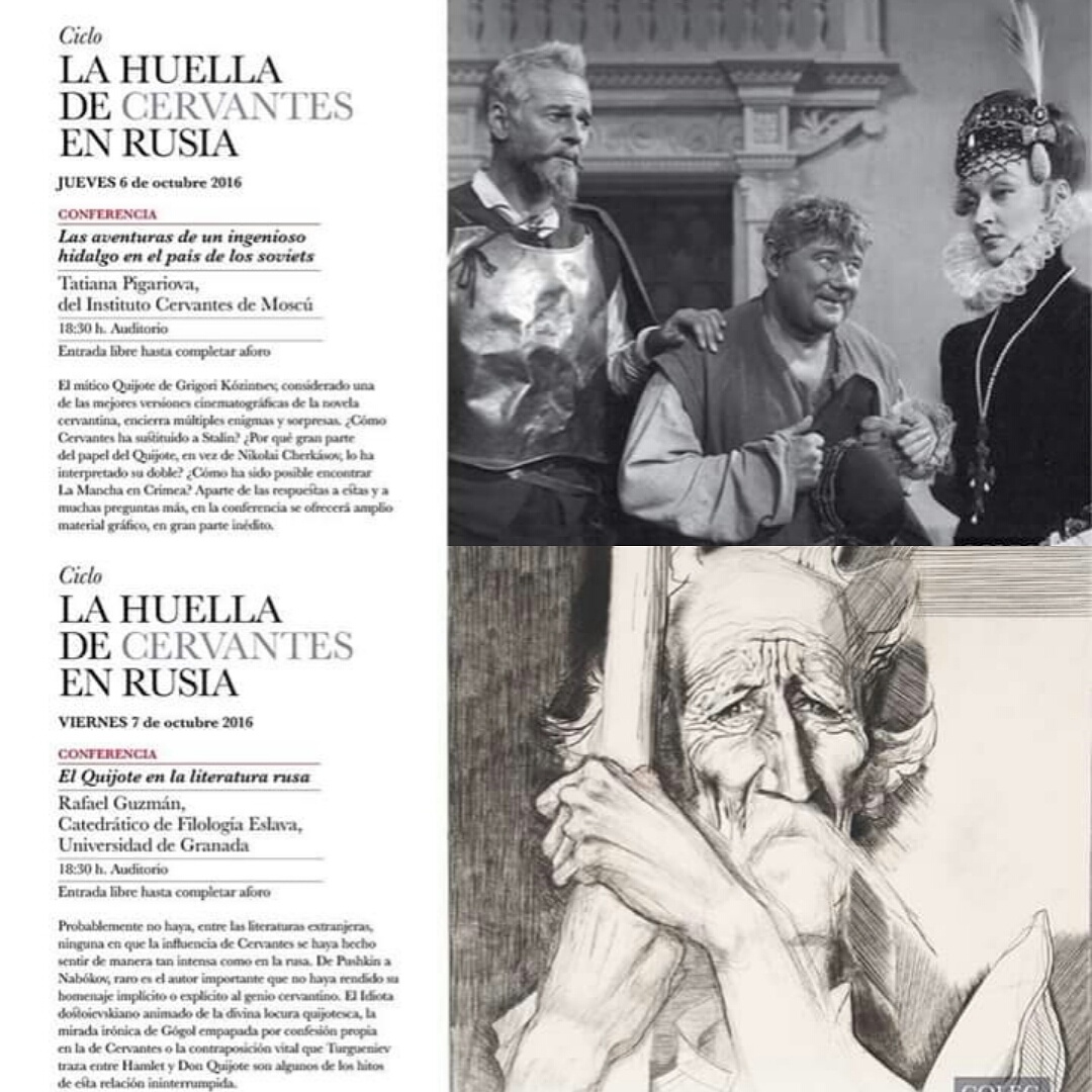 Fruiday October 7th. Rafael Guzmán, Slavic Languages Professor in Granada University. Don Quijote in Russian Literature. Mr Guzmán will delve on the deep influence of Cervantes in writers like Dostoievski, Gogol or Turgueniev.