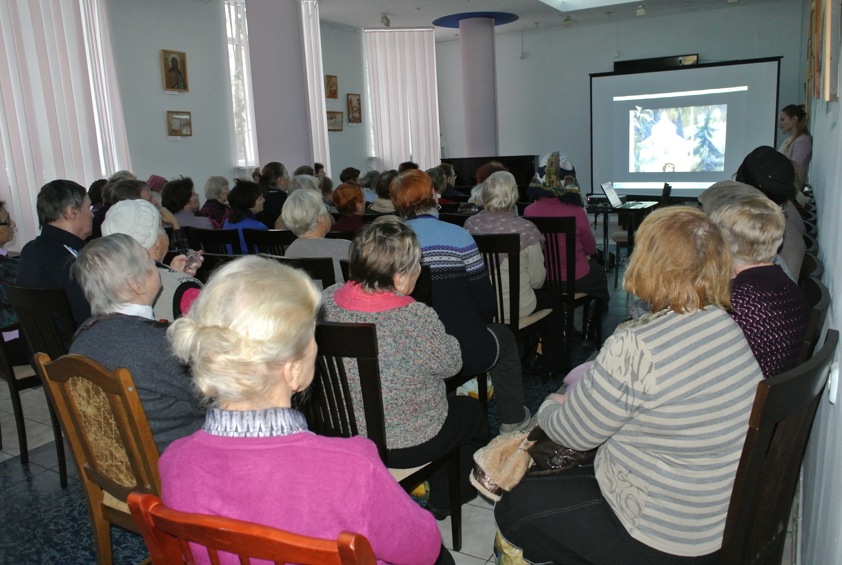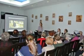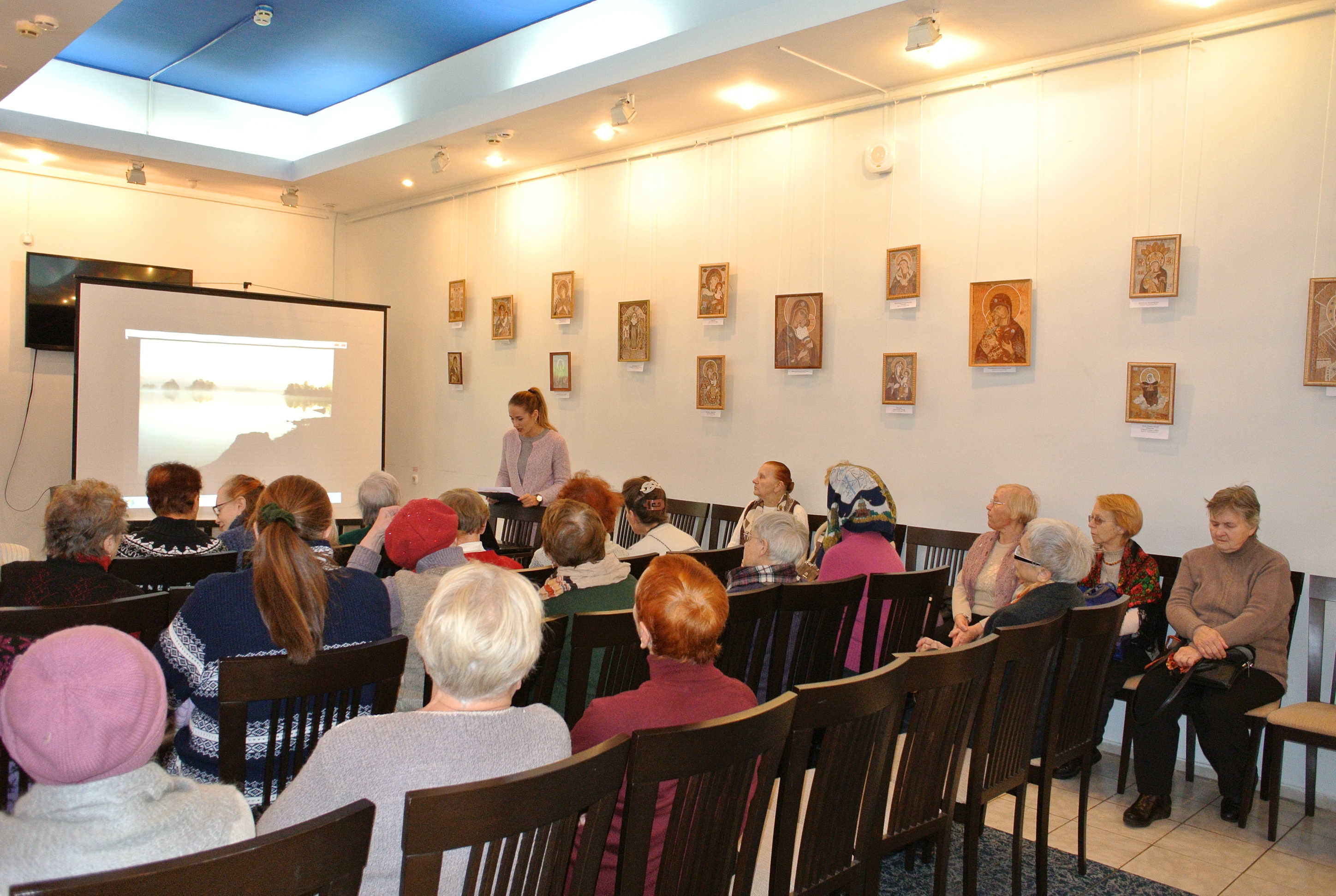 Участники мероприятия – клиенты Комплексного центра социального обслуживания населения Калининского района (Отделения дневного пребывания граждан пожилого возраста и инвалидов) и читатели библиотеки - познакомились с произведениями художников разных эпох, отражающих жизнь и быт православных монастырей – Ферапонтова, Кирилло-Белозерского, Соловецкого, Александро-Невского и других крупных монастырей Севера России. Были продемонстрированы образы святых русской православной церкви, портреты духовных лиц и виды монастырей. Разговор шел и об истоках традиции русского монашества, о личностях, сыгравших особую роль в его становлении, о древнейших монастырях – хранителях культуры православия, о духовном наследии Сергия Радонежского и его школы.