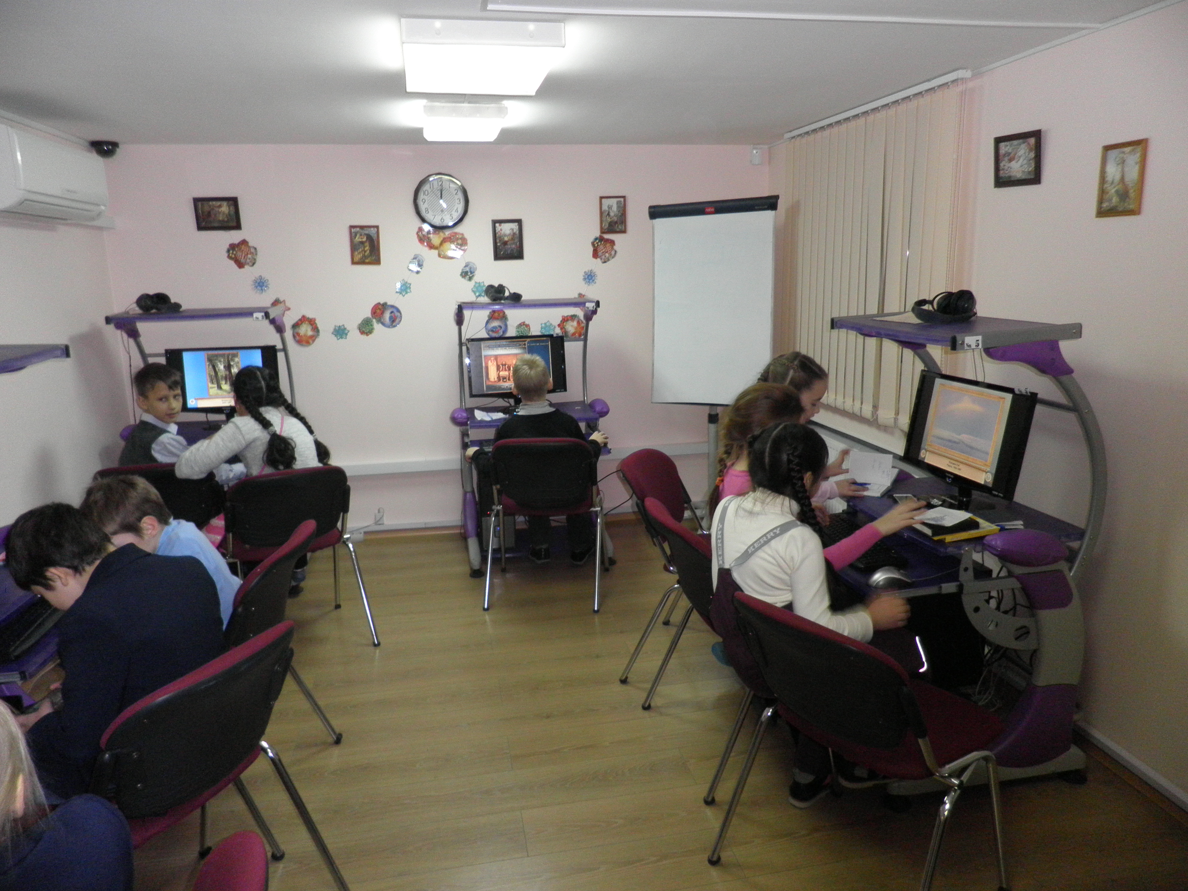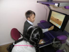 В библиотеке № 1 им. Н.Г. Чернышевского прошло очередное занятие для детей из цикла «В гости к прекрасному» в рамках проекта «Русский музей: виртуальный филиал». Дети познакомились с основными жанрами живописи; они узнали, как художник создает картину, чем пользуется при её написании, что такое мольберт и холст, какие бывают краски и кисти. Была показана презентация «Русские живописцы», и школьники попытались сами описать увиденные в ней картины. Далее все посмотрели фильм о И.И. Шишкине, который представили сказочные герои Фафаля и Фафалина. А в завершение встречи дети с удовольствием выполнили задания в играх «Светлячки» и «Ровесники».