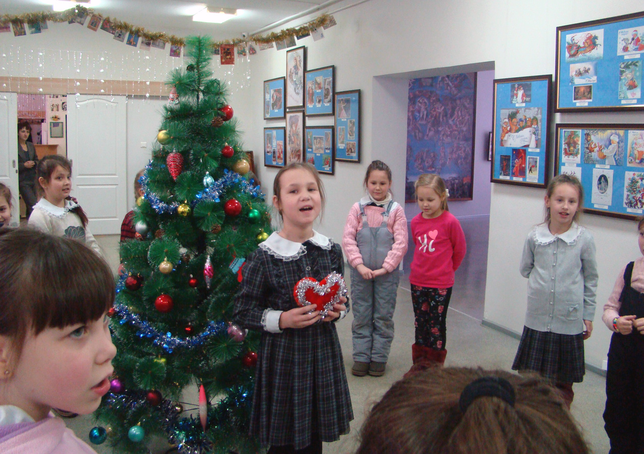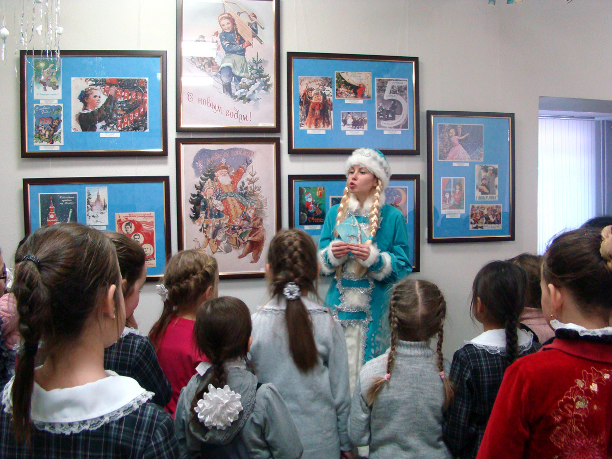 Первыми посетителями выставки стали учащиеся Мариинского класса МБОУ «Кадетская школа № 14» г. Чебоксары. Гостей встретила Снегурочка, весело рассказав об истории развития новогодней советской открытки, о популярных персонажах и темах изображений. Так, попав на новогоднюю выставку, ребята узнали о покорении Северного полюса и космоса, познакомились со знаменитым Олимпийским Мишкой, трудовыми профессиями, полюбовались сказочными героями и лесными зверями в окружении Деда Мороза.