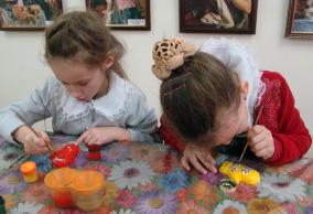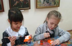 Также Снегурочка устроила увлекательные игры и хороводы вокруг елки, не обошлось и без традиционных стихов, песен и танцев у «нарядной красавицы». Поймав новогоднее настроение, ребята отправились на творческую мастерскую, где расписали гипсовую фигуру «рукавичка». Игрушки получились разные, так как каждый ребенок проявил свое неповторимое воображение. Рукавичка станет замечательным елочным украшением дома и будет напоминать о волшебной атмосфере выставки в «Радуге».