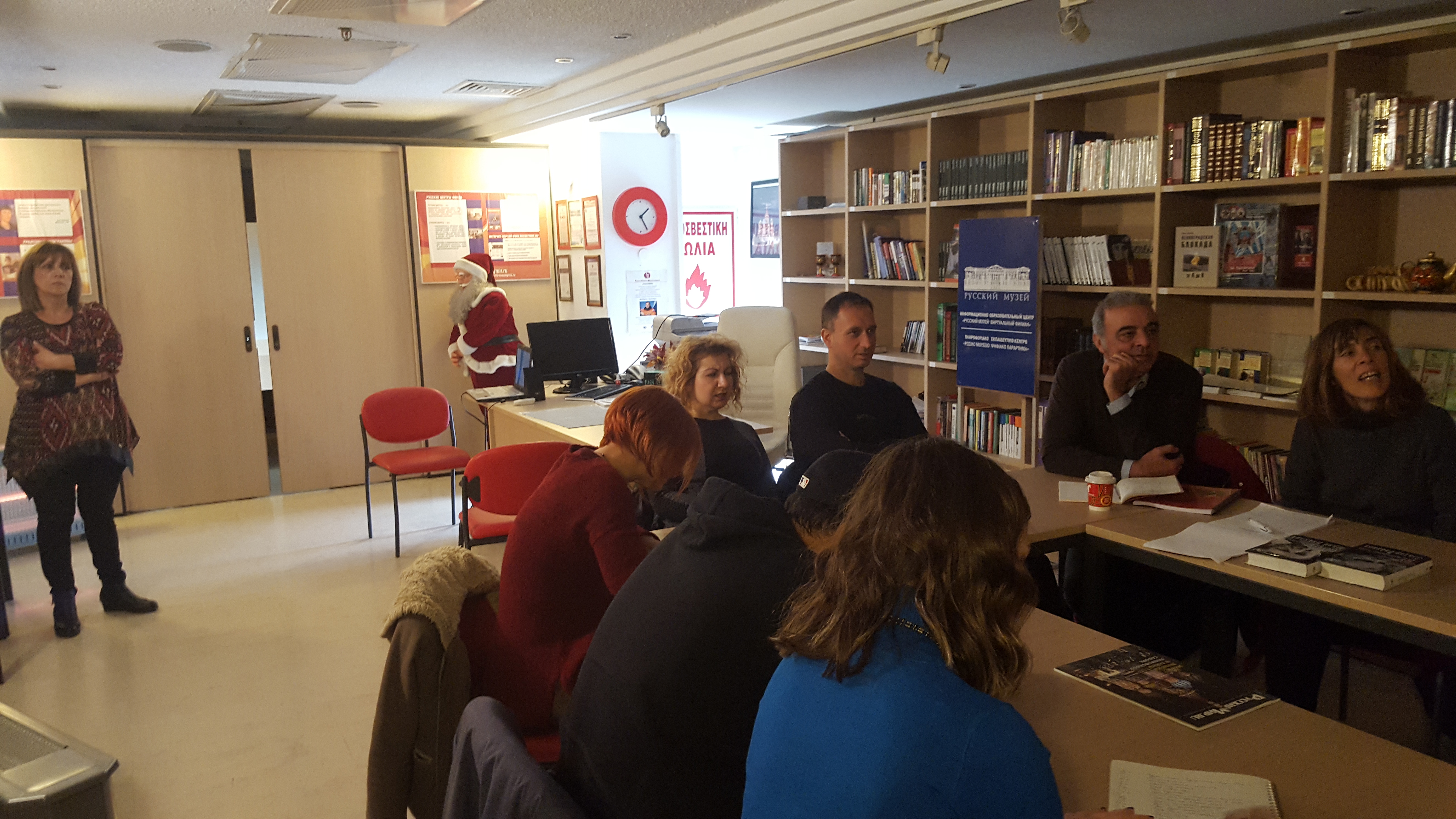 Творчество Ф.М.Достоевского, согласно опросам в Греции, наиболее известного и читаемого здесь русского писателя, привлекает большое внимание широкой греческой аудитории. Подтверждением этому стал и проявленный интерес друзей русского языка и культуры к презентации Виртуального филиала Русского музея и Центра «Русский роман Достоевского», подготовленной к юбилейной дате - 150-летию выхода в свет романа «Преступление и наказание». Во вступительном слове перед слушателями руководитель Виртуального филиала и Русского центра Н.В.Супоницкая отметила неоспоримо весомый вклад писателя в мировую сокровищницу шедевров литературного наследия, познакомила слушателей с портретом великого писателя, который находится в Русском музее Санкт-Петербурга.
