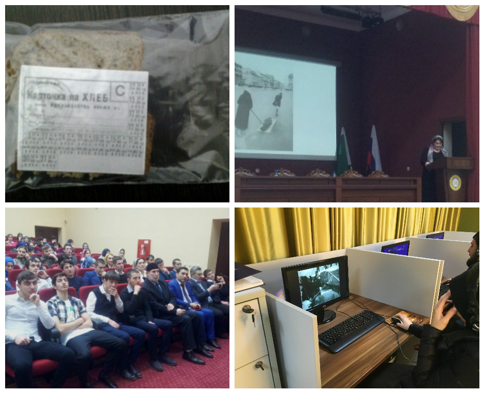 26 января 2017 г. в кинолектории Национального музея ЧР состоялось мероприятие ко дню снятия блокады Ленинграда (8 сентября 1941г. −27 января 1944 г.). Это совместное музейное занятие Национального музея ЧР с Виртуальным филиалом Русского музея. Слушателями лекции заведующей отделом «Новейшей истории» Неби Юсуповой стали студенты грозненских профессиональных техникумов и учащиеся СОШ столицы.