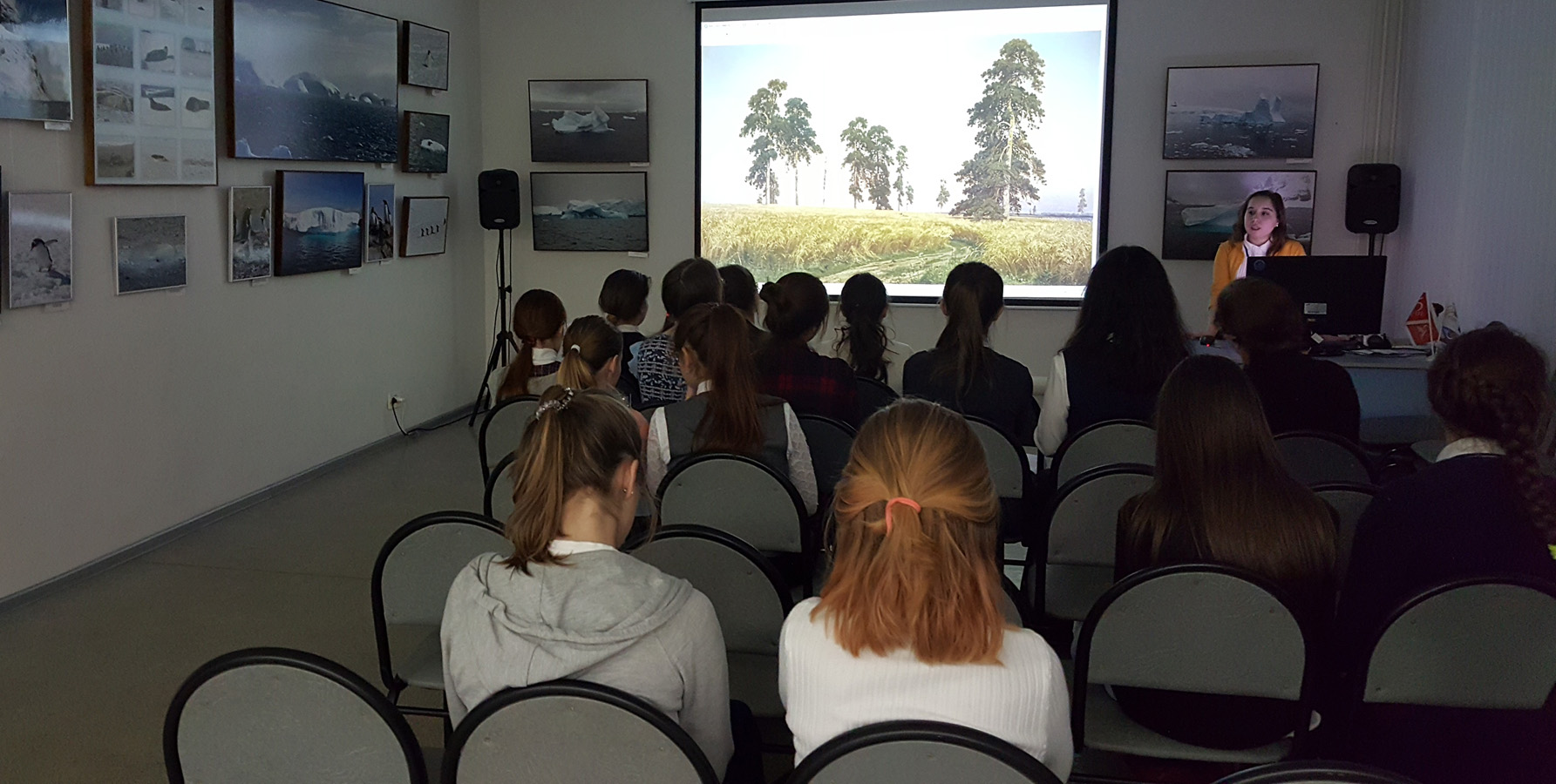 Большая часть работ художника посвящена жизни леса. Юные художники встретились с главными произведениями художника: «Полдень. В окрестностях Москвы», «Рожь», «Лесные дали», «Утро в сосновом лесу», «Дождь в дубовом лесу», «Корабельная роща».