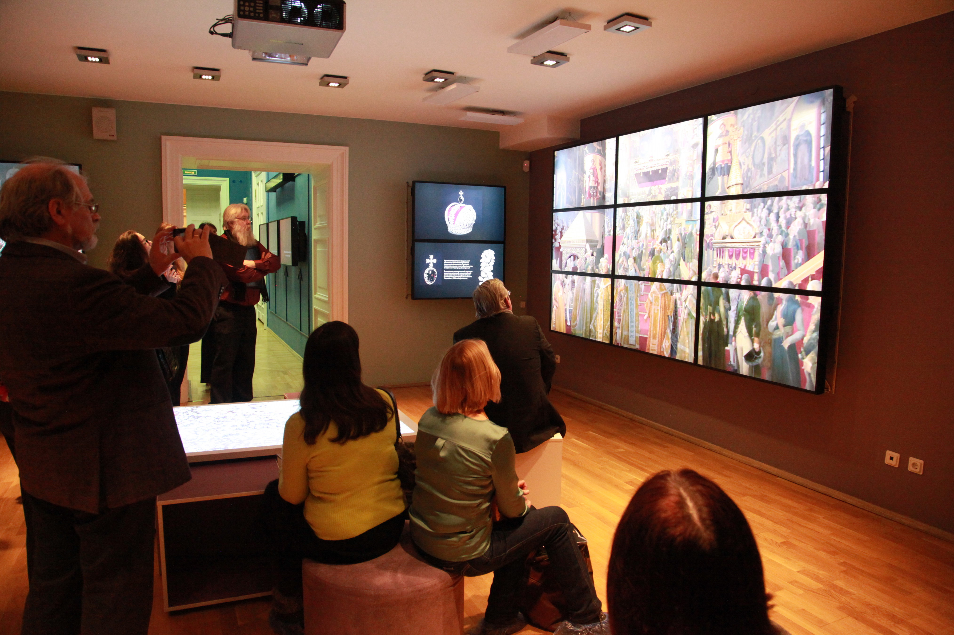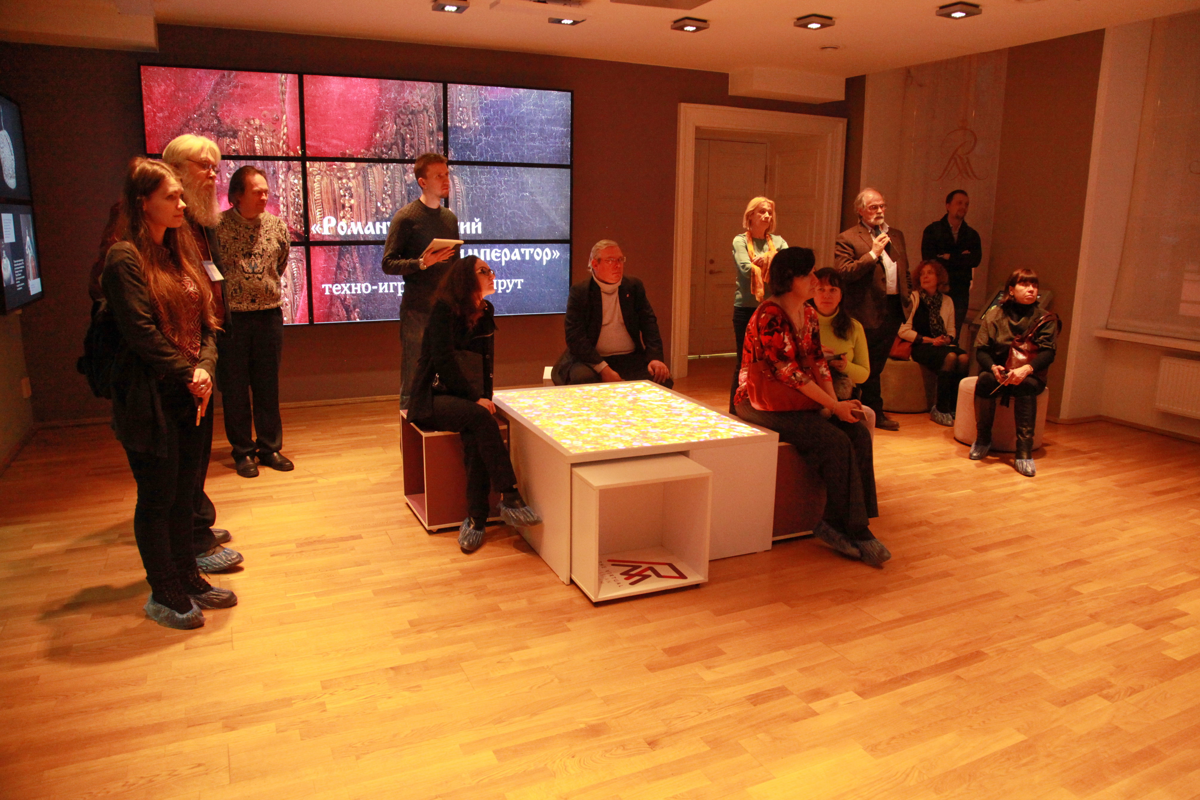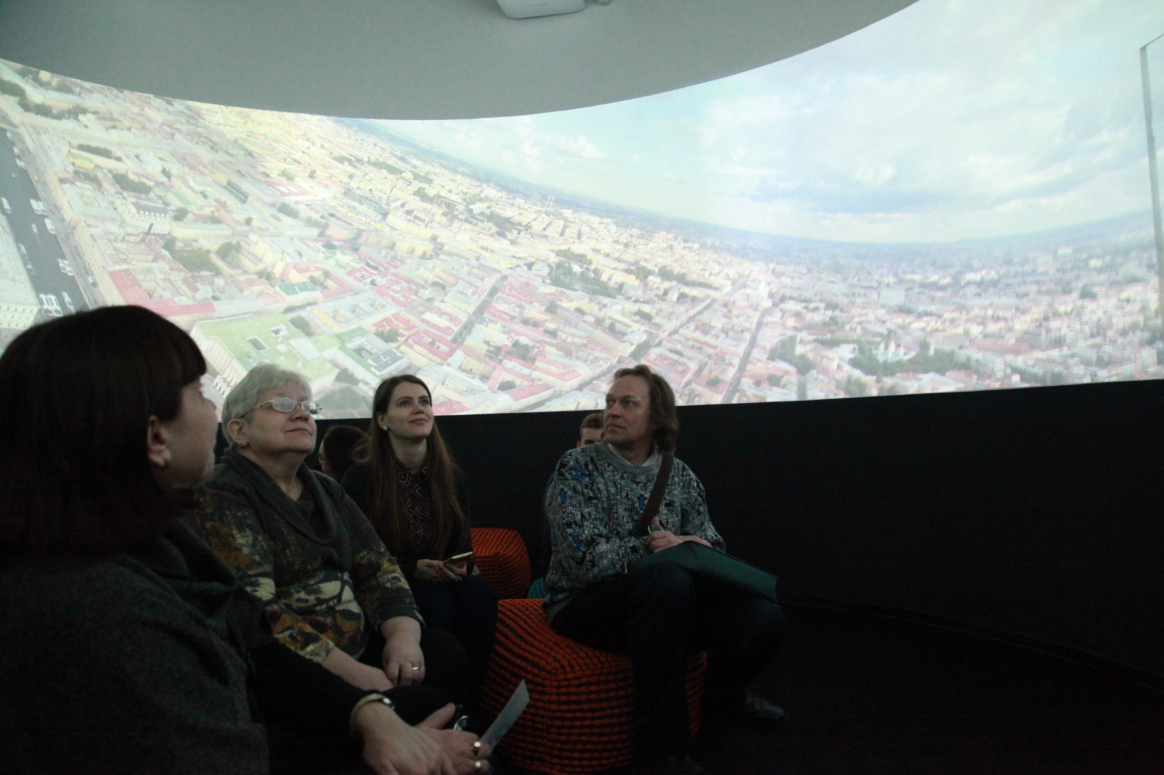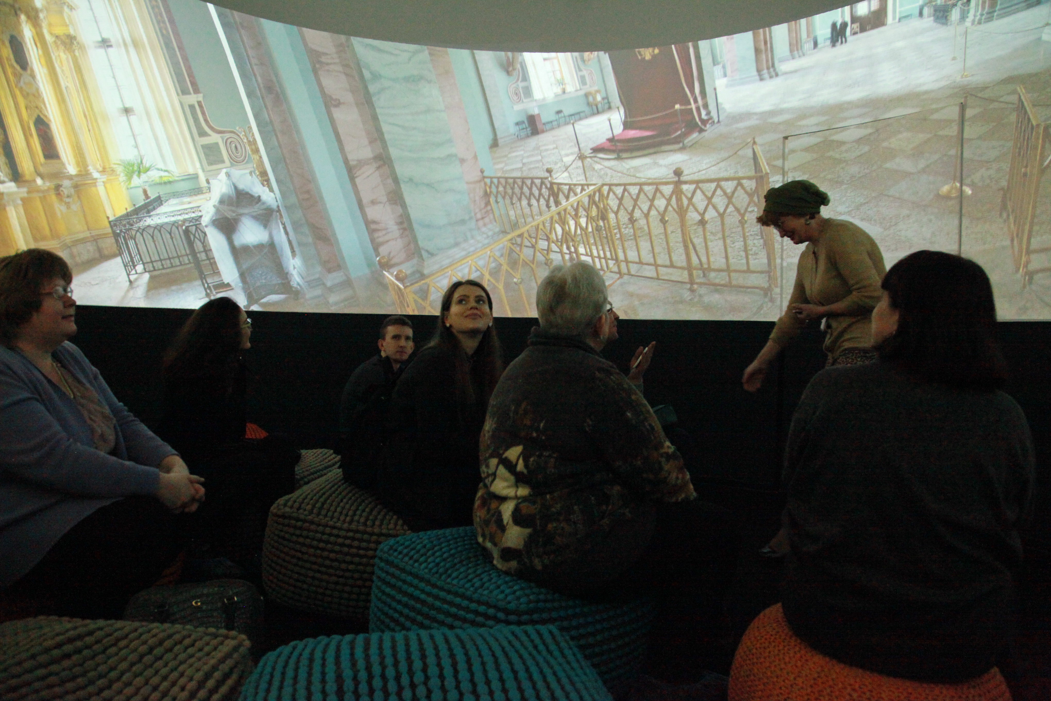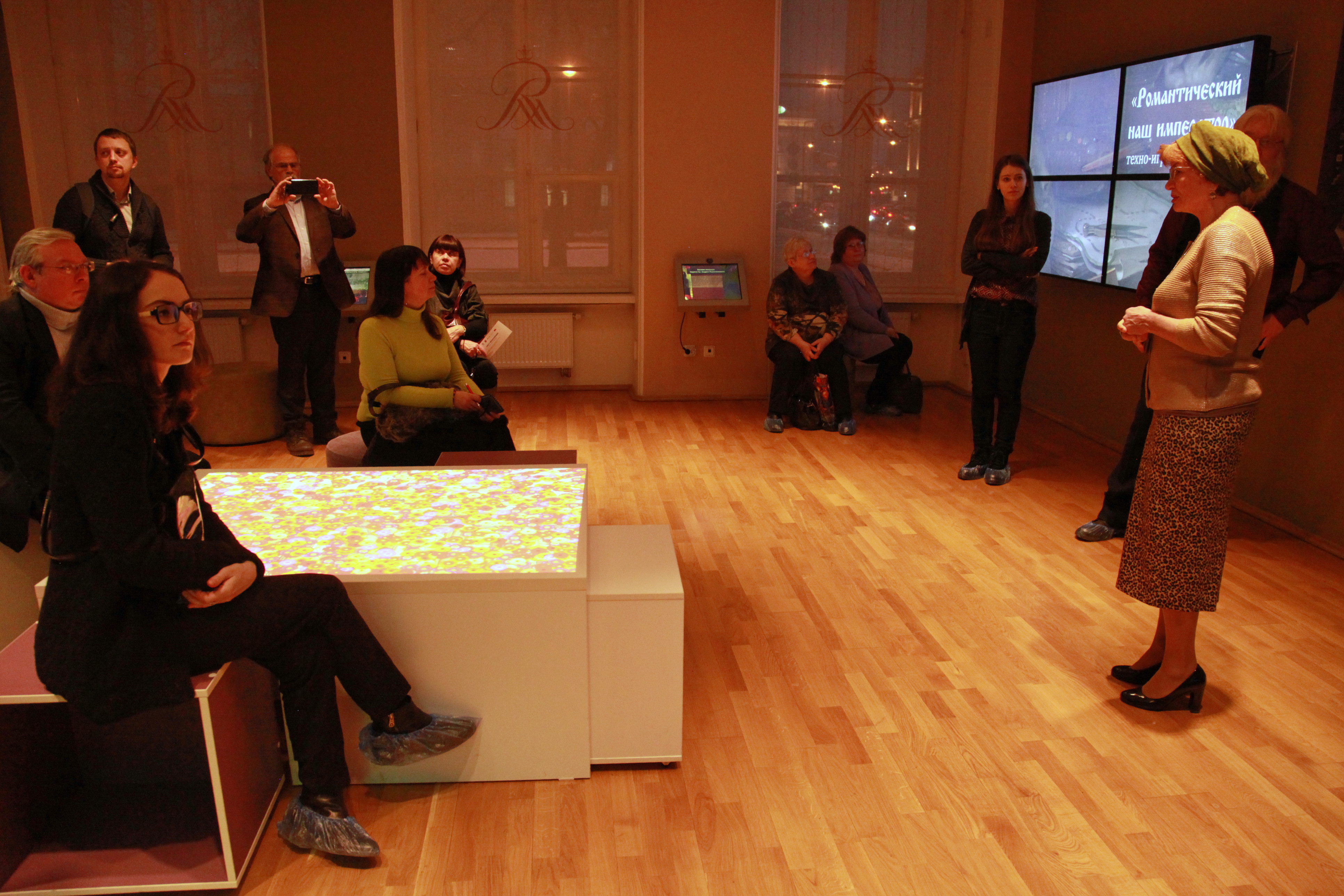 Участникам встречи провели экскурсию по Центру мультимедиа Русского музея, одним из направлений деятельности которого является создание тематических мультимедийных экспозиций, знакомящих с музейным комплексом, собранием Русского музея посредством представления произведений искусства в мультимедийном формате.