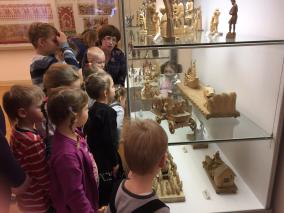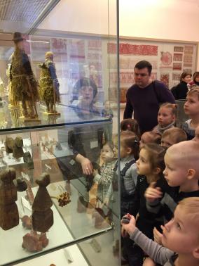 Ребята средних групп побывали в отделе народного творчества и познакомились с русской народной игрушкой.