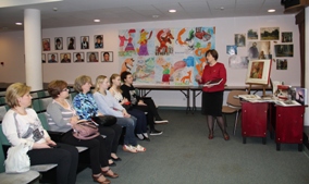Для педагогов дошкольного учреждения п. Будогощь была подготовлена  экскурсия-консультация «Тема  войны в  творчестве  художников».  Были предложены темы :  « Ленинградская летопись войны»-,  «Плакат приближал победу», «Дети в годы войны» .  с воспитателями  были рассмотрены  картины, с которыми они могли познакомить детей дошкольного возраста. Вниманию  педагогов была представлена  выставка литературы на военную тематику  из  медиатеки виртуального филиала.