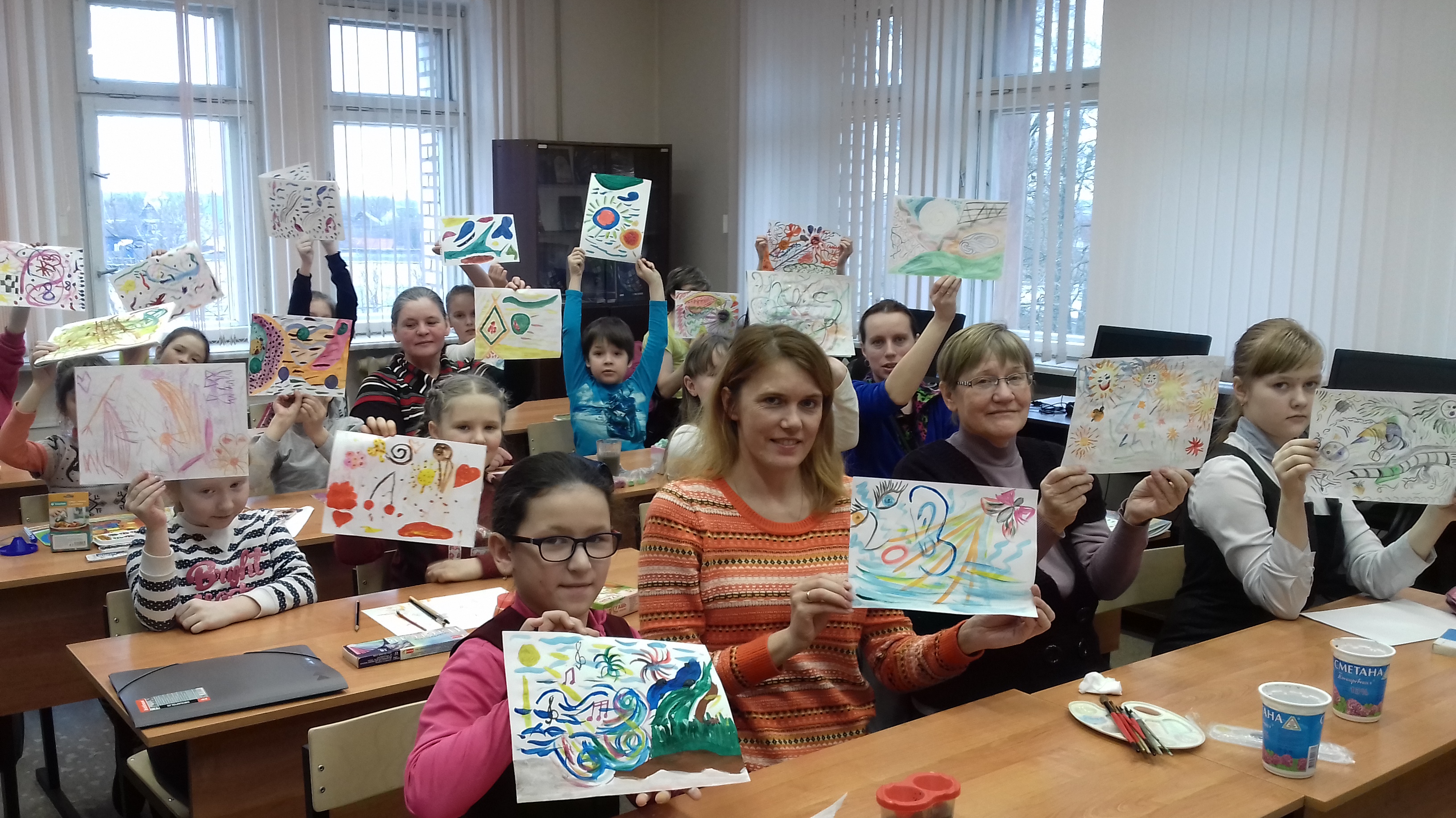 Вдохновленные работами Кандинского и Малевича, участники создали собственные абстрактные композиции.