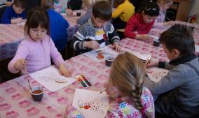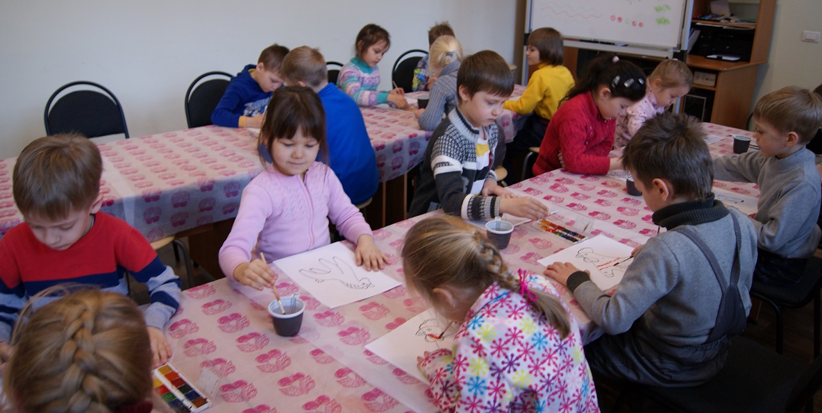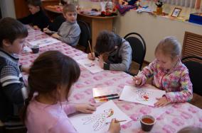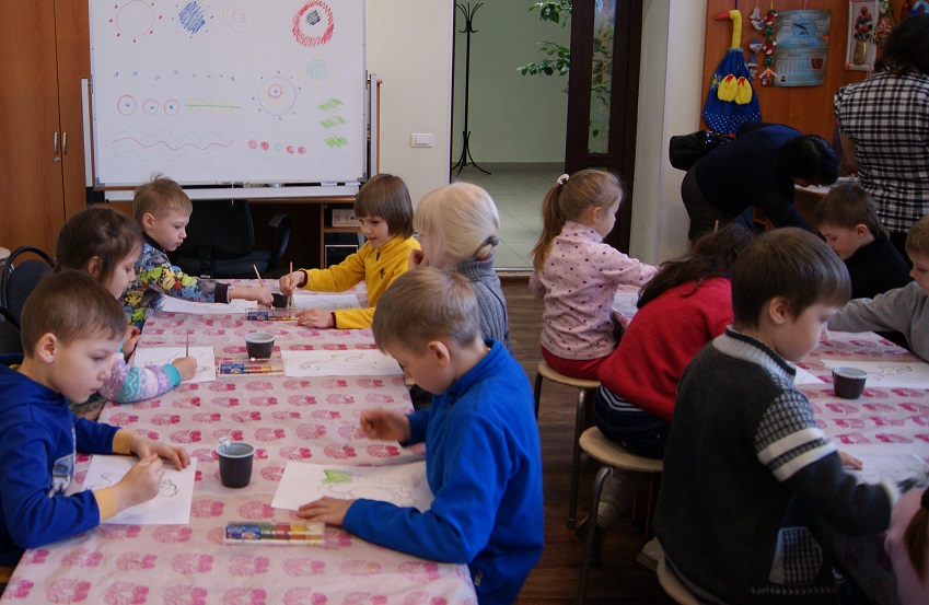 Дети из детского сада №33, пришедшие в виртуальный филиал Русского музея вчера, рассказали о своём посещении ребятам из других групп. Увидев, какие рисунки они принесли, дети из соседней группы тоже пришли в виртуальный филиал, чтобы подробно узнать о дымковской игрушке. С интересом прослушав историю дымковской игрушки и посмотрев её изображения юные посетители с нескрываемым удовольствием стали раскрашивать бумажные заготовки. В росписи дымковской игрушки нет полутонов и цветовых переходов. Это придаёт не только яркость и контраст, но и психологически вызывает только позитивные эмоции. При кажущейся сложности орнамента, технические приемы росписи игрушки довольно просты. Дети тоже, как и дымковские мастера, для создания композиции использовали комбинации простых геометрических форм – точка, круг, полоса, клетка. Все маленькие авторы по-разному использовал элементы росписи и поэтому рисунки получились очень разными. И воспитатели, и дети сказали, что обязательно придут ещё в виртуальный филиал Русского музея.