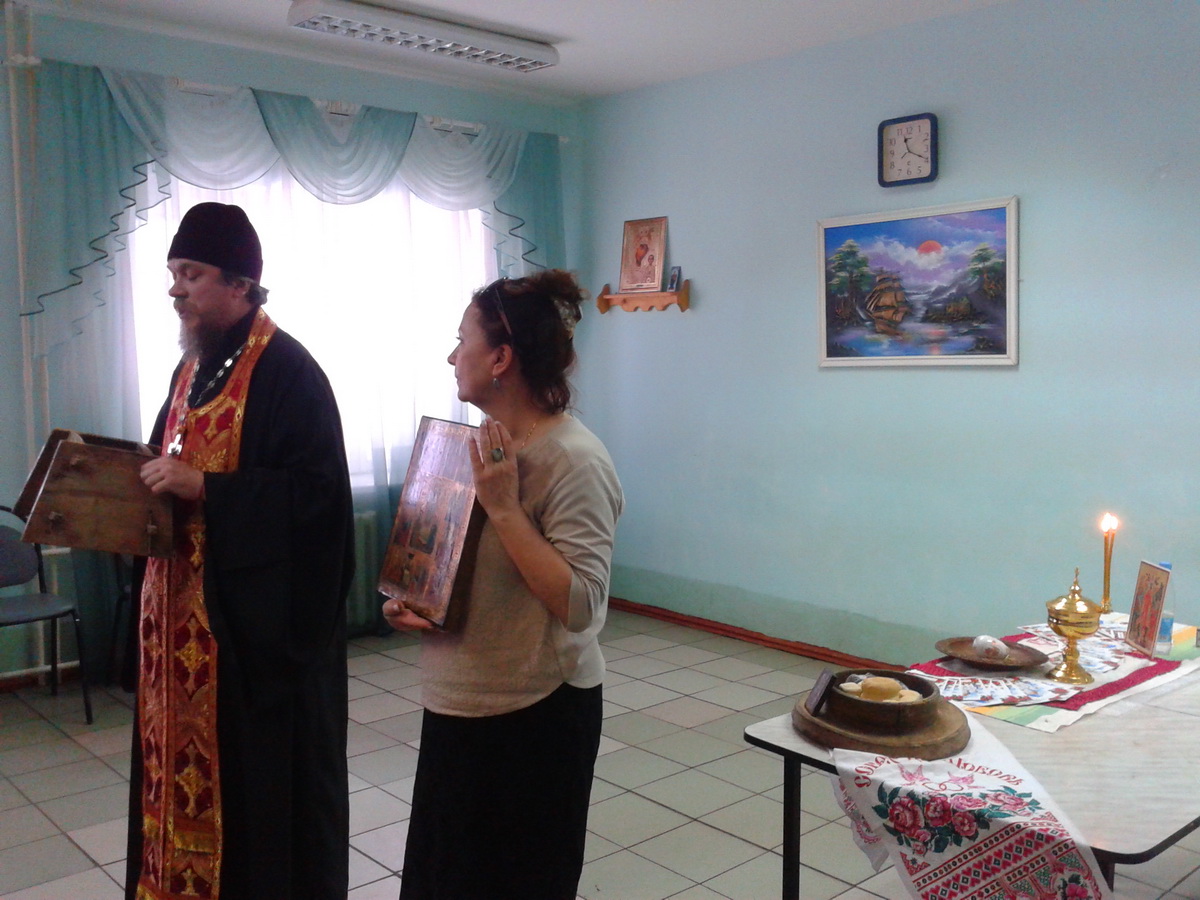 В пятницу Светлой Седмицы праздновалась память иконы Божией Матери “Живоносный источник” и для пациентов больницы был совершен молебен, после которого о. Виктор окропил всех святой водой и на память подарил всем присутствующим пасхальные открытки «Христос Воскресе!».