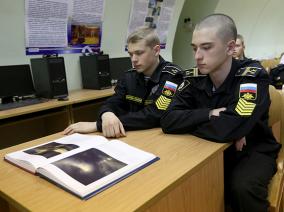 В канун Всемирного дня музеев и дня рождения Кронштадта кадеты 52 класса с воспитателем И.А. Порошиной посетили виртуальный филиал Русского музея в библиотеке корпуса. Занятие, подготовленное библиотекарем О.К. Котеньковой, было посвящено творчеству выдающегося русского живописца Ивана Константиновича Айвазовского, 200-летие которого отмечается в этом году.