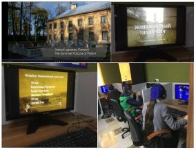 Дети с интересом просмотрели видеофильмы из раздела «Комплекс Русского музея» Санкт-Петербург. Вымышленный и реальный и Живописный Санкт-Петербург. Фильмы рассказывают о городе, каким он предстает в реальности и в произведениях живописи из собрания Русского музея, а также в многочисленных произведениях изобразительного искусства из фондов Русского музея. Также ознакомились с интерактивной программой из раздела «Коллекции и выставки Русского музея» Санкт-Петербург. Портрет города и горожан. Программа включает более 400 полноэкранных репродукций произведений живописи и графики из собрания Государственного Русского музея, которые представляют собой собирательный образ Санкт-Петербурга в различные исторические эпохи.