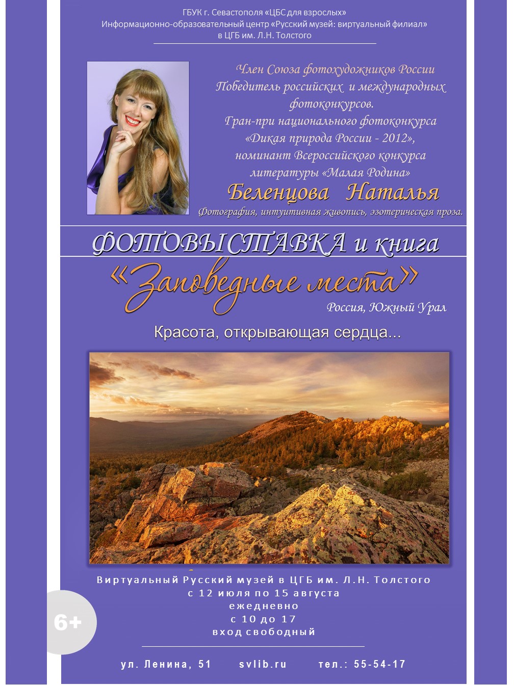 В зале Информационно-образовательного центра «Русский музей: виртуальный филиал» Центральной городской библиотеки им. Л.Н. Толстого открылась выставка фотопроекта «Заповедные места».
