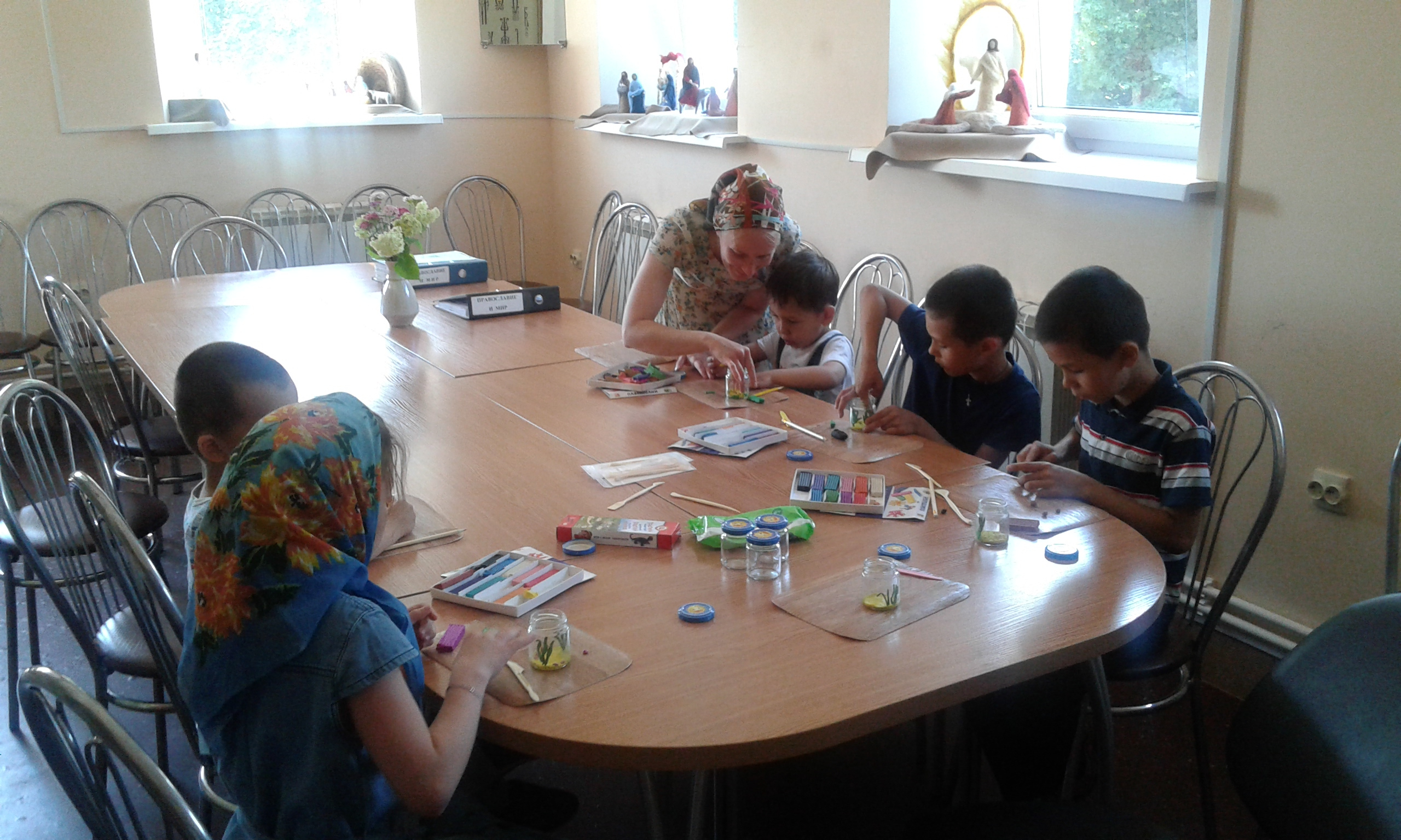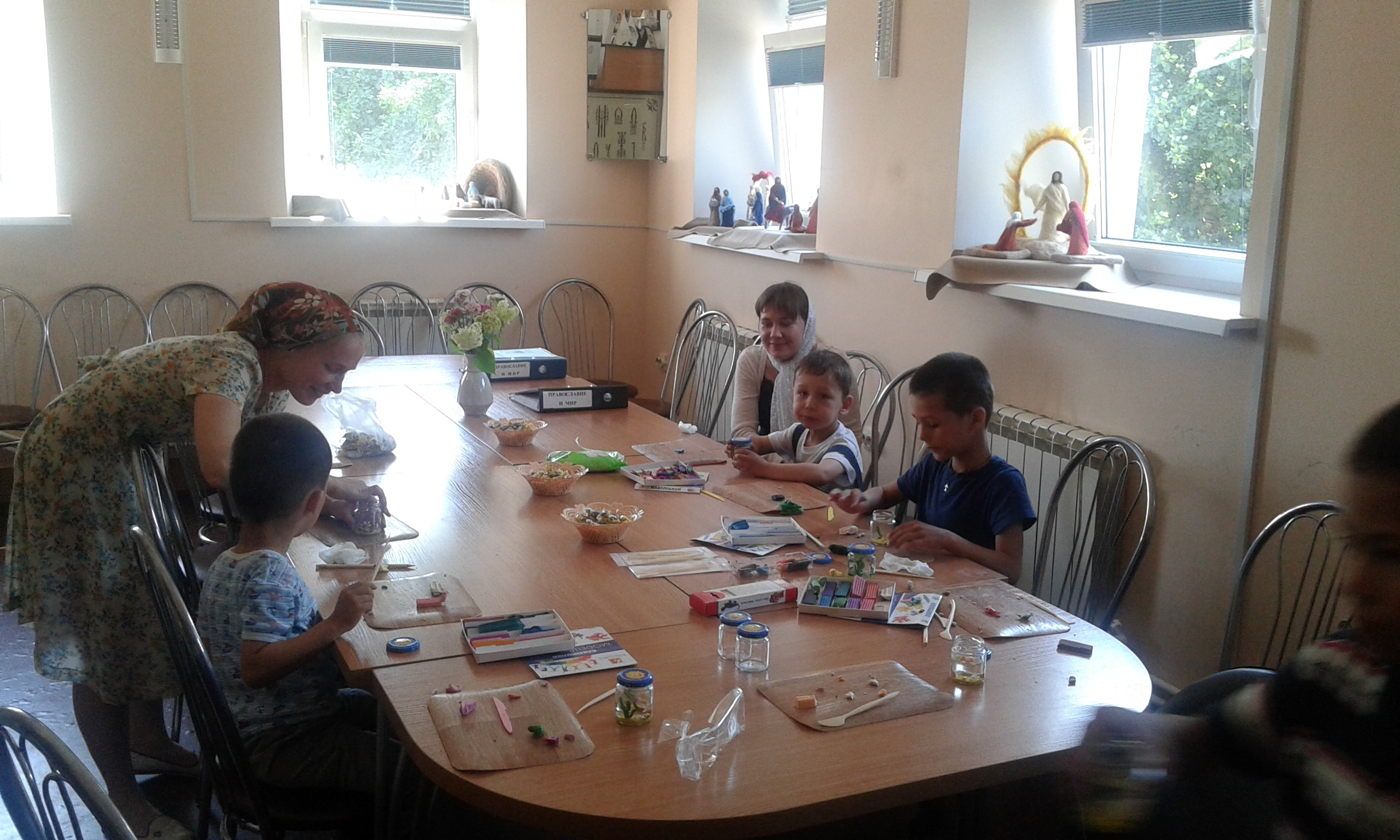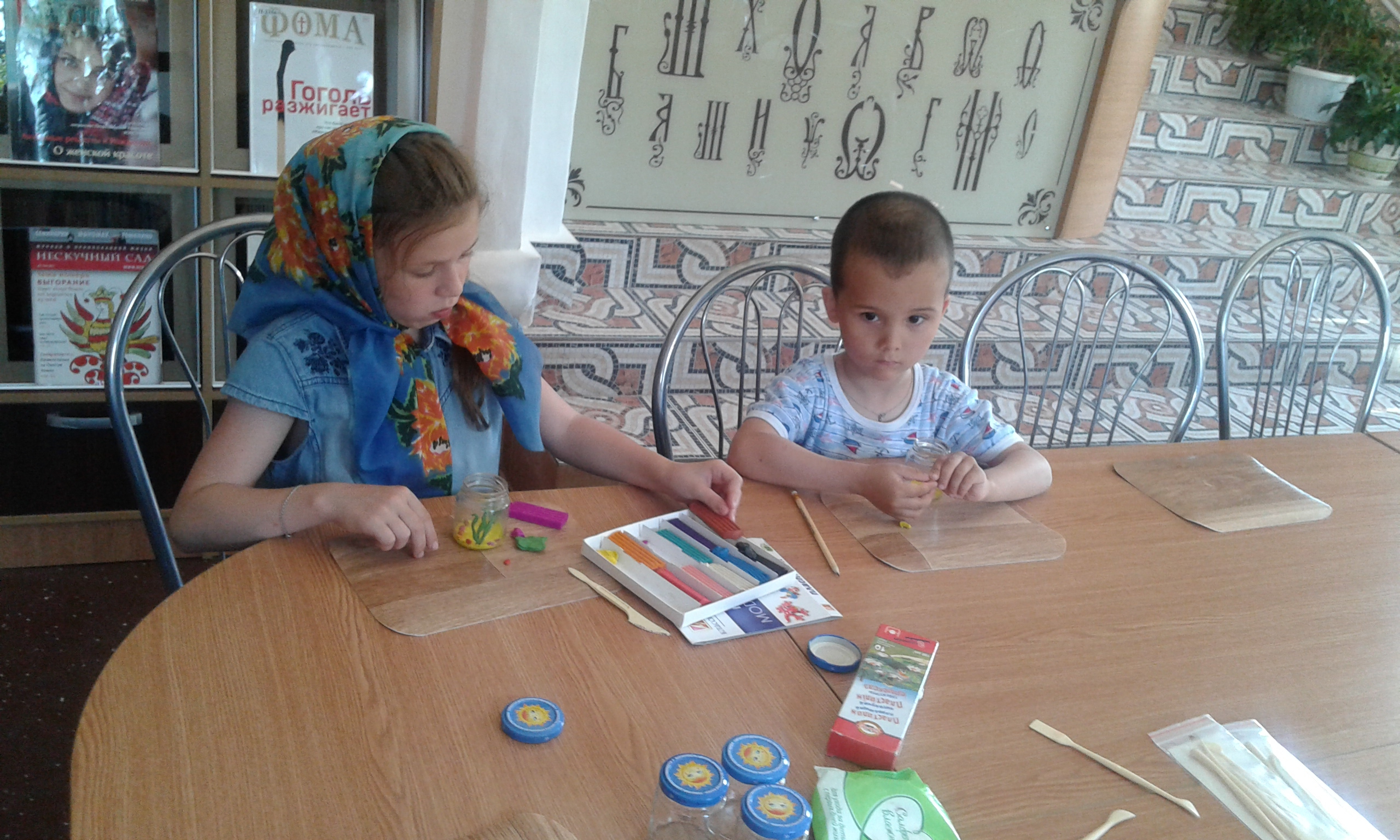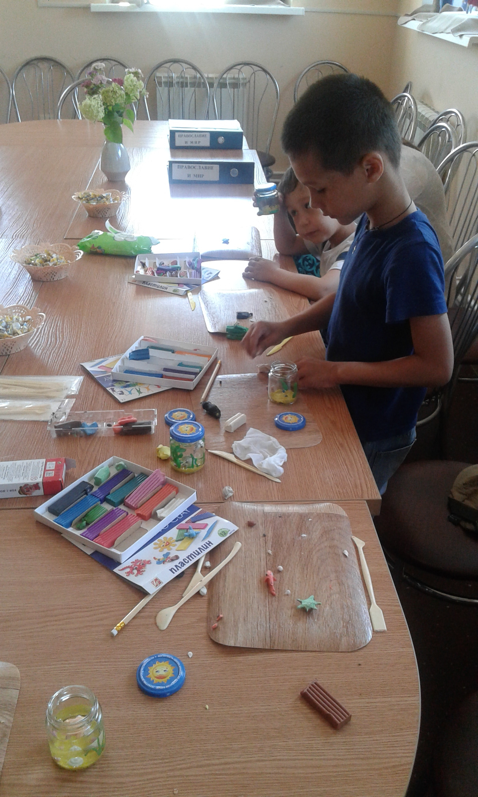 Сегодня, 16 июля, в Виртуальном Русском музее при храме состоялось занятие для детей по лепке из пластилина. Художник Елена Авельева учила ребят, как сделать аквариум для игры. Дети с увлечением лепили водоросли, скатывали камушки, вырезали ракушки. В итоге у них получились милые маленькие аквариумы, которые украсят их домашний игровой уголок или станут приятным подарком родным.