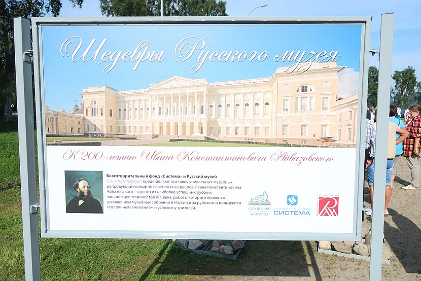 18 августа в Петрозаводске стартовал второй этап экологического благотворительного фестиваля «Солоны-2017». В течение недели в рамках фестиваля в семи городах Республики Карелия пройдет нескольких десятков благотворительных и социальных проектов – выставки, спектакли, мастер-классы. В рамках фестиваля Русский музей представил 20 произведений кисти Ивана Айвазовского из своей коллекции – выставка репродукций знаменитого русского художника-мариниста торжественно открылась на набережной Онежского озера. Узнать как можно больше о каждом из представленных на выставке произведений можно благодаря QR-кодам, подготовленным службой «Виртуальный Русский музей».