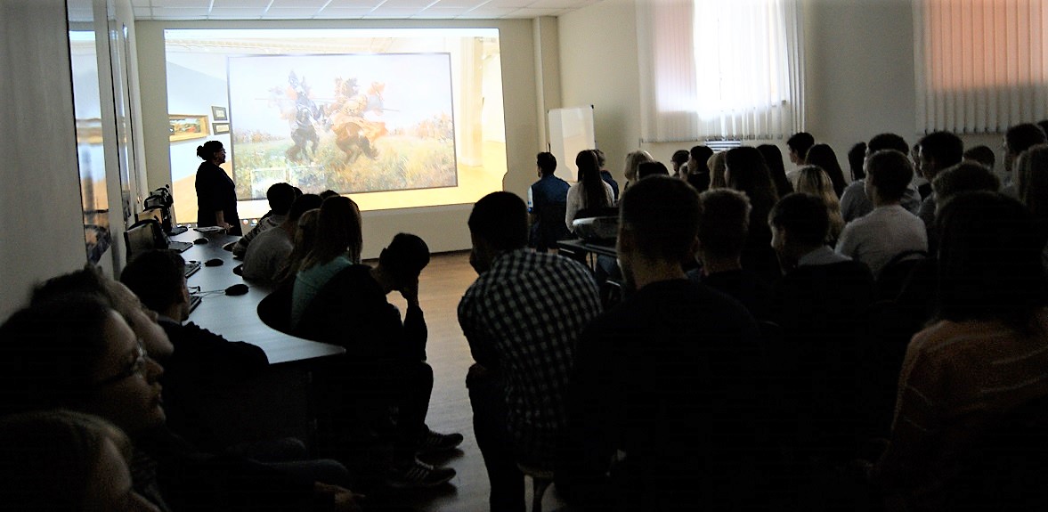 В тот же день  Центр культурных инициатив посетили студенты Горно-керамического колледжа – филиала Южно-Уральского государственного университета в г. Сатке. Для них была проведена экскурсия по экспозиции. Кроме этого, ребята  узнали, что в Русском музее хранятся  работы, рассказывающие о жизни Сергия Радонежского и о  Куликовской битве. Благодаря виртуальной экскурсии по временной выставке «Избранники Клио», демонстрировавшейся в залах Русского музея, можно внимательно рассмотреть картины, прочитать и прослушать информацию о них.