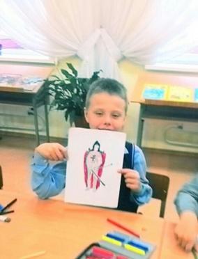 В ходе занятия учащиеся рисовали, а затем рассказывали о «своем» богатыре, говорили о наиболее выразительных, на их взгляд, образах народных героев, ознакомились с облачением богатырей. Для проведения занятия были использованы ресурсы медиатеки: интерактивные программы «Врубель М.А.», «Города и музеи России», «Васнецовы А.М. и В.М.», «России воины-сыны» и игровые программы.