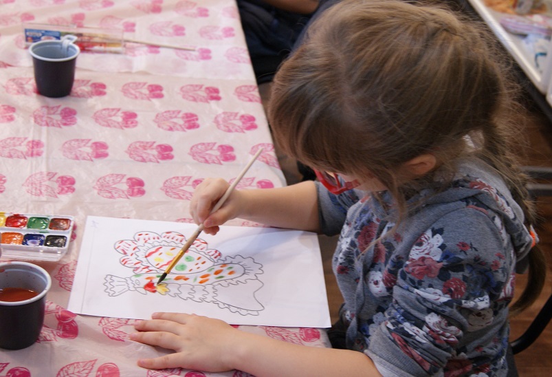 После услышанной и увиденной информации, детсадовцы стали расписывать нарисованные заготовки дымковских игрушек.  Именно роспись в большой степени определяет самобытность, индивидуальность дымковской игрушки. Можно сказать, что цвет моделирует форму, обогащает её. Юные художники так же, как и дымковские мастера, наносили на белый фон яркие круги, зигзаги, полоски.  И так же, как и у дымковских мастеров, общие принципы росписи игрушки у каждого ребёнка нашли свою интерпретацию: все игрушки оказались расписанными по-разному.