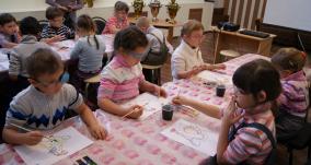 Дети узнали, что игрушки лепились дымковскими слободчанами из местной красной глины, смешанной с просеянным песком. Фигурки сушили, обжигали в русских печах, после белили раствором мела, разведённого на молоке. Затем игрушки расписывались красками, замешанными на яйце, иногда с применением сусального золота для отделки деталей.