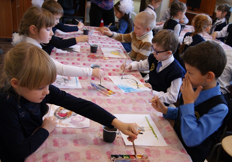 Конечно, первоклассникам самим захотелось попробовать – получатся ли у них рисунки, если найти в кляксе какие-нибудь очертания. С радостью сделав кляксу и обменявшись листком с соседом, юные художники стали рисовать. Чёрная кошка с красными лапами и хвостом, жук – олень, бегущая черепаха, малиновый паук, утёнок на лугу – каждый рисунок заслуживает внимания. В процессе рисования дети стали придумывать забавные истории про своих персонажей и никак не хотели заканчивать и собираться домой, хотя за некоторыми уже пришли родители.