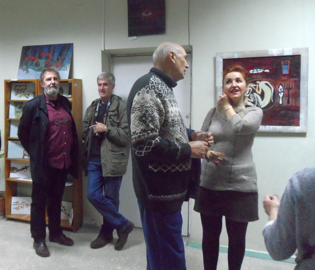 Еще до открытия выставки, в дни работы над экспозицией, мы говорили с Анной о картинах, о книгах, искусстве и чтении, о причинах и следствиях и том, что всегда будто бы «над», «помимо», даже «вопреки». Тотемы, символы, метафоры, философские категории и «простые истины», безусловно, интересны в исполнении художника, но… посетители библиотеки неторопливо рассматривают «Скитальца», листы иллюстраций и картины по мере их появления в зале. Человека читающего, а, следовательно, думающего, по-видимому, привлекает не только «первобытная» стилистика, созданных автором рисованных текстов, не только их визуальная необычность.