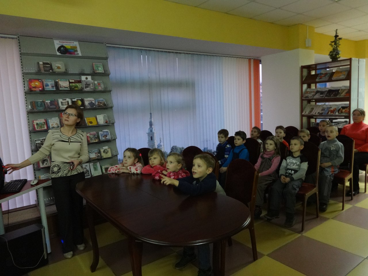 27 ноября библиотекарь зала искусства Ольга Лыженкова провела для воспитанников подготовительной группы детского сада №16 беседу с элементами игры "Художник пишет... Осень» из цикла «Арт-класс». Мероприятие сопровождалось электронной презентацией и демонстрацией материалов из Медиатеки Русского музея (видеофильмов «Пейзаж» и «Левитан» из цикла «В страну музеев вместе с Фафалей»).