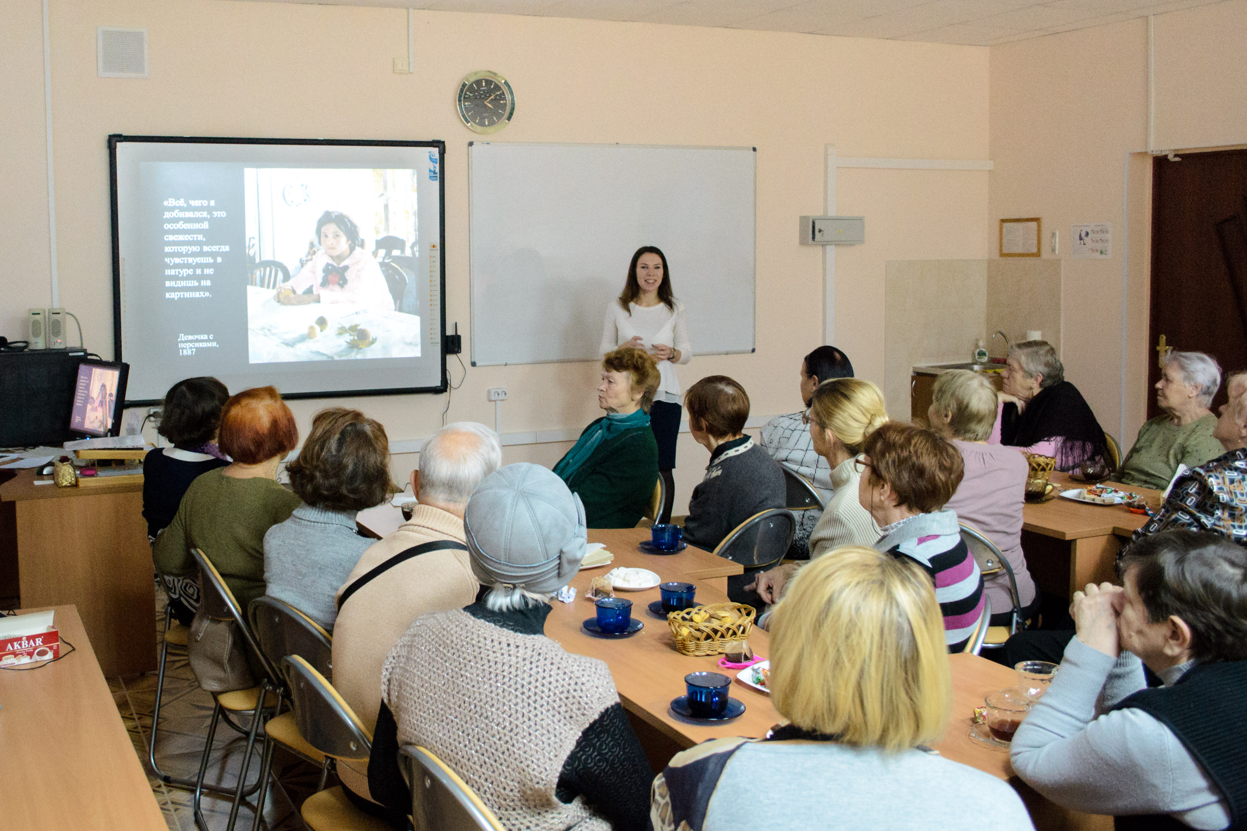 Участники встречи узнали интересные факты о жизни и творчестве Валентина Серова, услышали рассказ о персонажах на полотнах художника и увидели репродукции картин из коллекции Русского музея и Третьяковской галереи.
